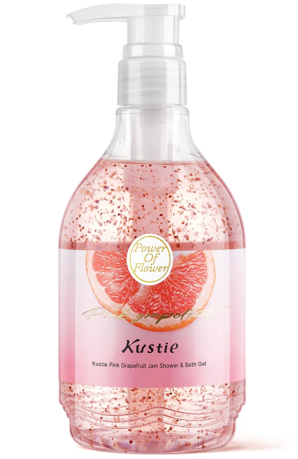 Kustie Grapefruit Jam Body Wash Exfoliating Shower Gel with Strawberry Seeds Grapefruit Extract & Squalane Refreshing Brightening & Nourishing Cleanser for Dry & Sensitive Skin 19.6 fl oz