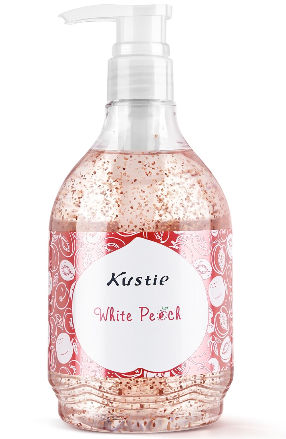Kustie Peach Jam Body Wash with Real Peach Extract Strawberry Seeds & Aloe Gentle Exfoliating Shower Gel for Sensitive Dry Skin Deep Clean Fruity Scent & Hydrating Formula 19.6 fl oz