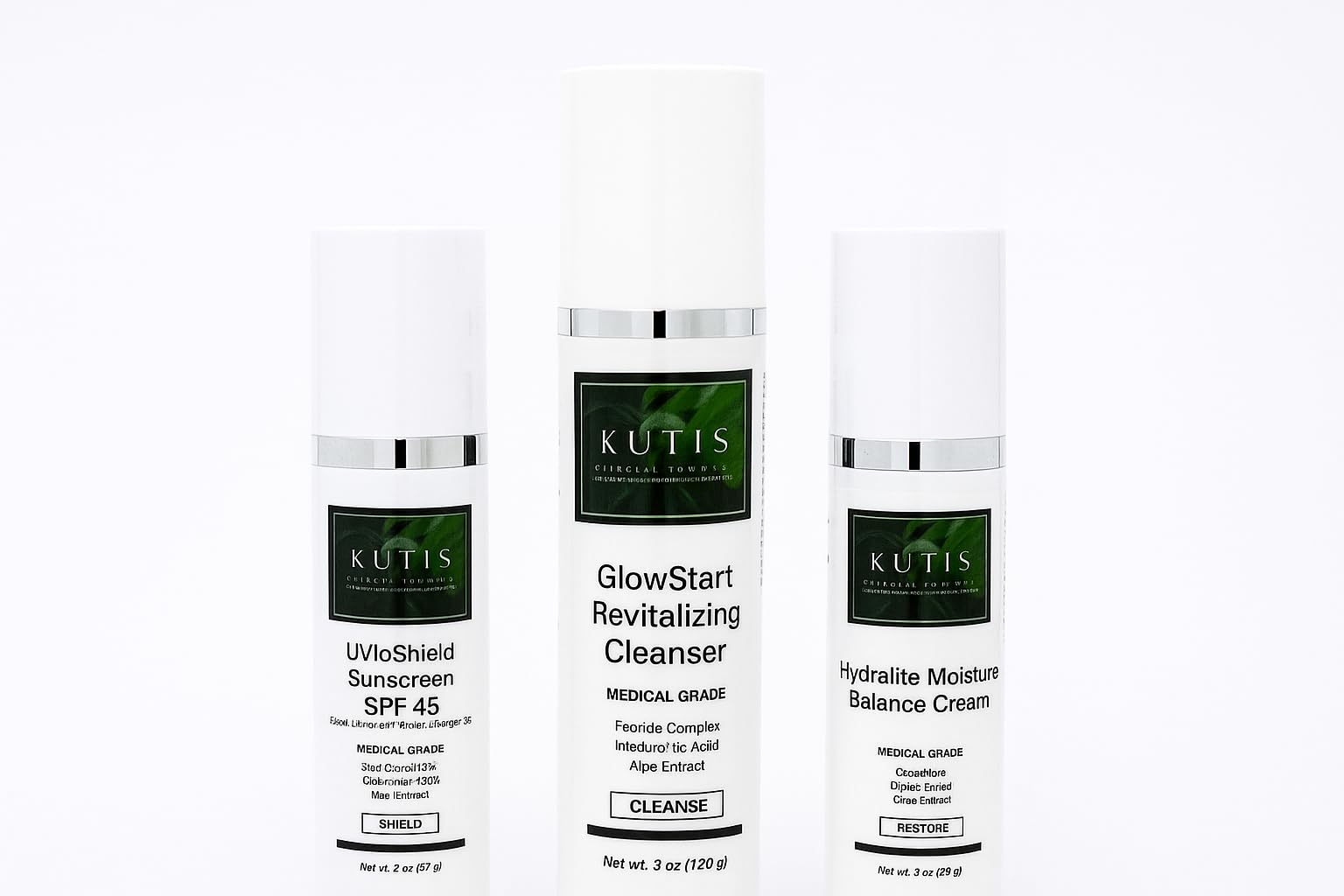 GENEROUS SIZING: Set includes 3 oz Revitalizing Cleanser, 3 oz Moisture Balance Cream, and 2 oz Sunscreen for long-lasting skincare routine. BALANCED PROTECTION: Includes both daily moisturizing cream for hydration balance and broad-spectrum SPF45 sunscreen for UV protection. SKIN RESTORATION: Revitalizing cleanser works to restore skin texture while maintaining optimal hydration levels for a healthier complexion. MEDICAL GRADE FORMULATION: Each product features advanced medical-grade ingredients including Feoride Complex and specialized moisture-balancing compounds. COMPLETE SKINCARE SET: Professional-grade skincare system including GlowStart Revitalizing Cleanser, Hydralite Moisture Balance Cream, and UVioShield SPF45 Sunscreen.
