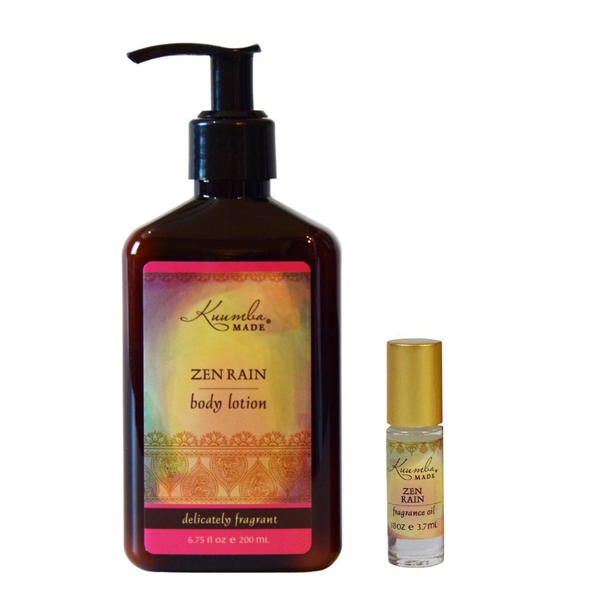 Kuumba Made Fragrance Gift Set One Zen Rain 1/8oz Fragrance oil with roll on applicator and One Zen Rain Lotion 6oz