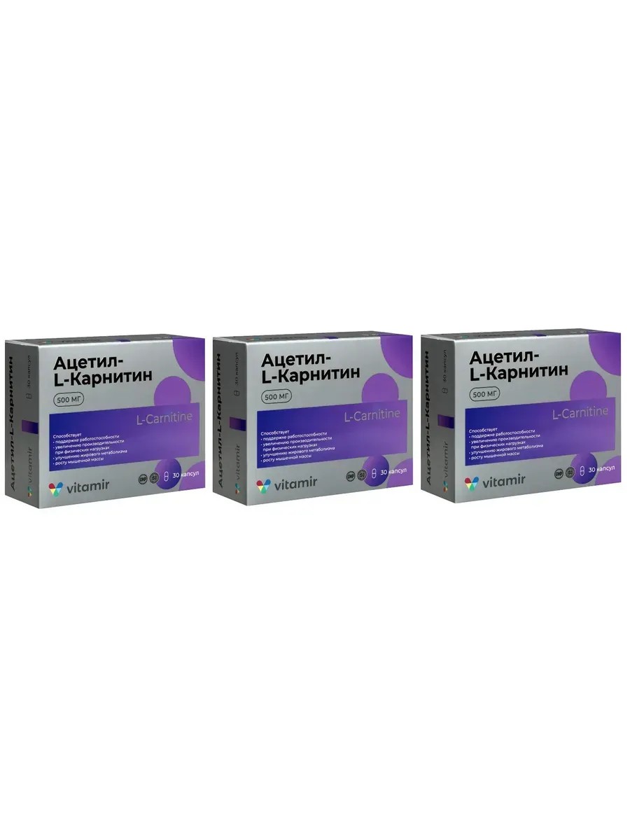 | Полное наименование товара | Витамир Ацетил-l-карнитин 500 30 шт. капсулы массой 500 мг |