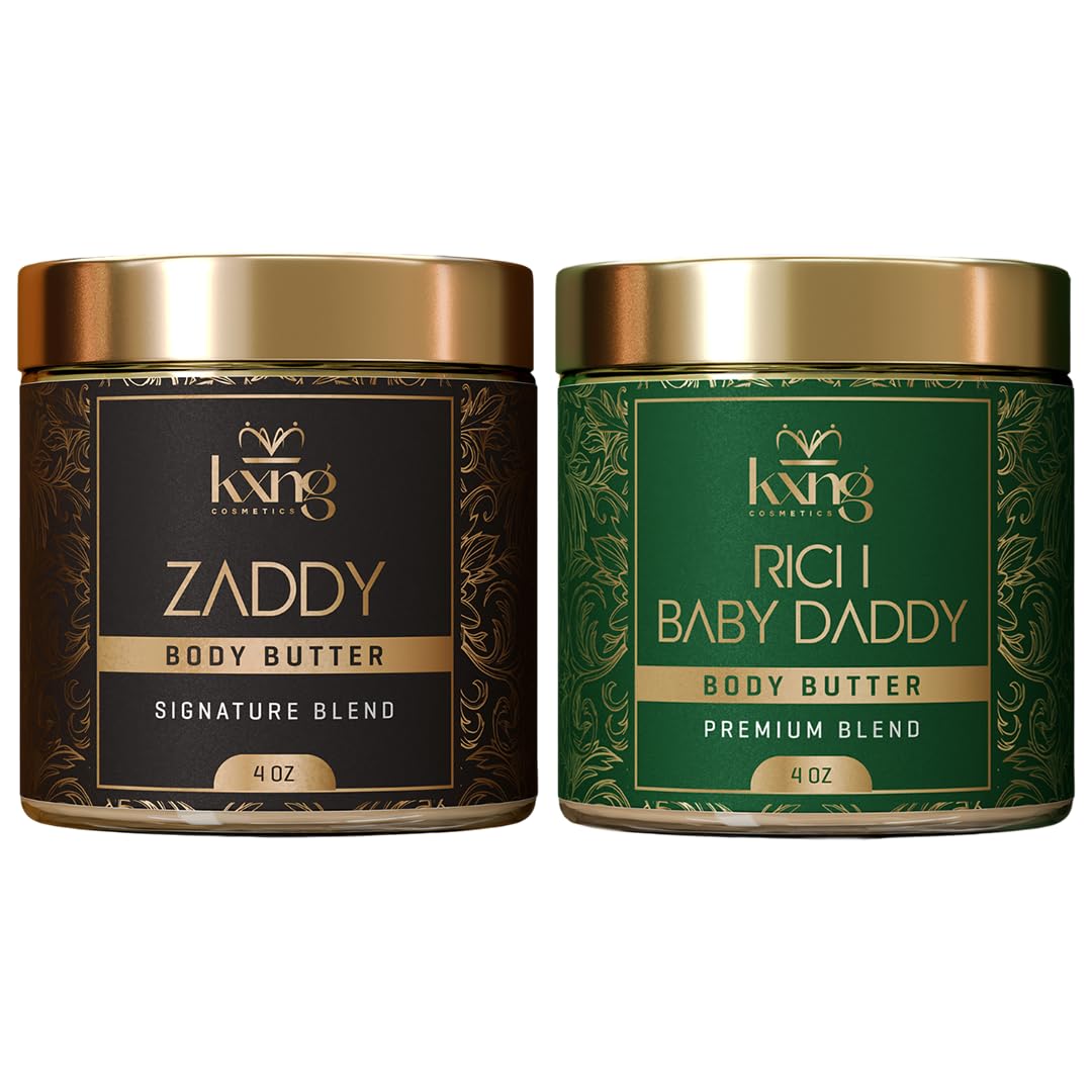 Body Butters, Creams, and Skin Care Moisturizers by KXNG Cosmetics. Pheromone Infused Men's body lotion is for all skin types: extremely dry skin, combination, dry, mature, normal, oily, and sensitive. Natural Organic Skin Care ingredients include organic whipped shea butter, cocoa butter, mango butter, kokum butter, coconut oil cream, vitamins, and essential oils for skin, including sweet almond oil, rosehip oil, argan oil, vitamin E oil, and jojoba oil. Body Butters for men can help replenish the skin's natural oils and protect the skin from stressors that would otherwise exacerbate dryness or irritation. Body Butter and lotions for men can help replenish skin's natural oils and protect the skin from stressors that would otherwise exacerbate dryness or irritation. Superior hydration while forming a protective barrier to lock in moisture all day long. The rich, non-greasy formula provides intense moisture and nourishment to revive dry, cracked skin. Body Butters are lightweight but offer heavy-duty hydration thanks to the concentration of plant-based butters and oils. Skin will moisturize in the benefits immediately, feeling supple and comfortable even in harsh weather conditions. Extra thick body butter infused with Shea Butter, Raw Cocoa Butter, and Kokum Butter, softens rough skin and provides twenty-four hours of deep hydration. Fall in love with the creamy texture that benefits your hands, legs, feet, back, stomach, and body. Our body butter contains ethically and sustainably sourced organic, cruelty-free ingredients and is handmade in the USA. Our body butter contains NO Parabens, Phthalates, Mineral oils, or artificial colors. Bring out your skin's naturally healthy glow with KXNG Cosmetics' Body Butter. Give your skin the nourishment it craves and treat it to deep, long-lasting hydration. : Designed for daily use on normal, dry, or sensitive skin. Works well as a body butter for women and men, offering reliable hydration in a creamy, easy-to-apply formula. ? - - : Melts quickly into the skin without heaviness or stickiness. Provides long-lasting hydration and a smooth finish, making it suitable for both men's body butter and women's everyday moisturizer needs. : Crafted with natural, skin-friendly ingredients to support smoother and healthier-looking skin. A great option if you prefer natural body butter, shea butter cream, or unrefined shea butter skincare. : Our rich shea body butter melts effortlessly into the skin, providing deep, long-lasting moisture. Perfect as a body butter for dry skin, delivering softness and comfort after showers or during cold weather. : Enjoy a luxurious fragrance crafted from spicy black pepper and smooth vanilla. This captivating aroma makes it an excellent body butter for women who love to smell good and a sophisticated, warm option for body butter for men.