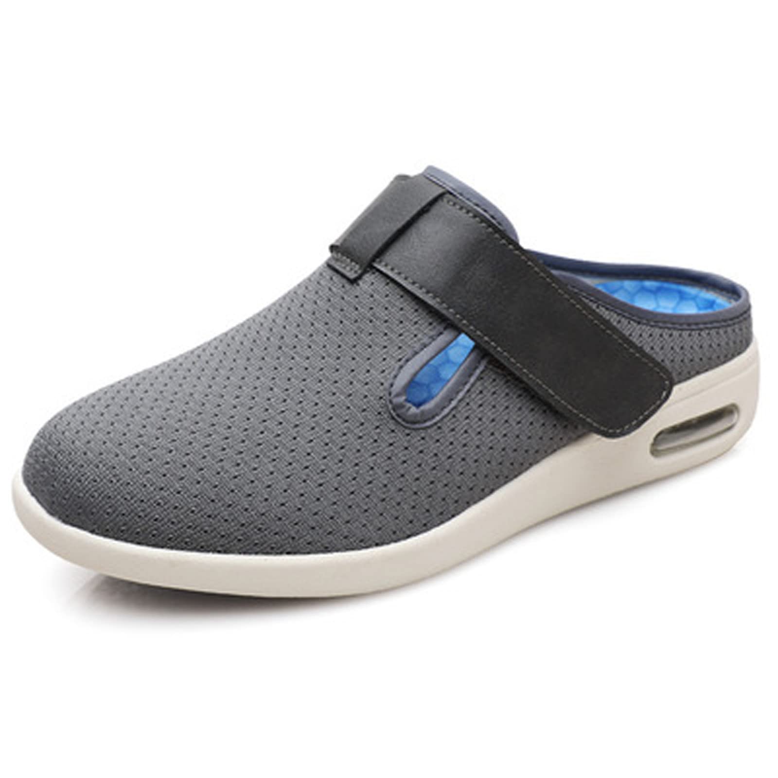 Why Choose Our Womens Extra Wide Walking Sandals Orthopaedic Slipper Easy to Put On and Off? The shoes adjustable sandal with the latest lightweight breathable materials. The light and comfortable sturdy sole provides grip for both indoor and outdoor wear. Extended widths shoes box is roomy enough to accommodate regular to swollen feet. These nice looking shoes for swollen feet offer adjustability for swelling, edema, bunions and post surgery foot care. In addition, the adaptability of our shoes offers easy on and off features for those needing assistance when dressing. Style: leisure Heel height: low heel (1-3cm) Toe style: round head With the bottom style: wedge Sole material: rubber foam Inner material: cloth Shoe making process: Adhesive shoes Insole material: synthetic leather style: single shoes Help surface material: mesh Package Includes: 1 pair x Diabetic Shoes Please Note: *If you find loose threads, do not pull. Cut with scissors. *If you are not sure about your size, measure your feet from heel to toe in inches. Please find the measurements for your reference.TARGET USER & OCCASION: Ideal for those who need extra stretch, comfort and soft to accommodate Swollen Feet, Hammertoes, Bunions, Plantar Fasciitis, Corns, Calluses, Osteoarthritis, Rheumatoid Arthritis, Hammer Toes, Morton's Neuroma, Oedema, Dementia, Injuries involving tendons, muscles, and bones or need a Post-op shoe. Slip-resistant elastic sole: The sole has a built-in air cushion, which has a good shock absorption effect, and adopts the latest wear-resistant non-slip soft sole design to make you feel better. Breathable mesh: The mesh upper is designed for excellent air permeability, making it more convenient to wear and easier to swing with your feet. Diabetic heel pain, foot pain, and plantar fasciitis are the best options. Elastic hollow knit upper: round-toe breathable cloth with elastic hollow knit upper to make your feet more comfortable. The mesh is very suitable for the summer heat. Ergonomic Design: Adjustable closures make the shoe loose or tight. Special air-cushioned sole with arch support Wide toe exhalation fabric and elastic cutout knit upper for better foot comfort.