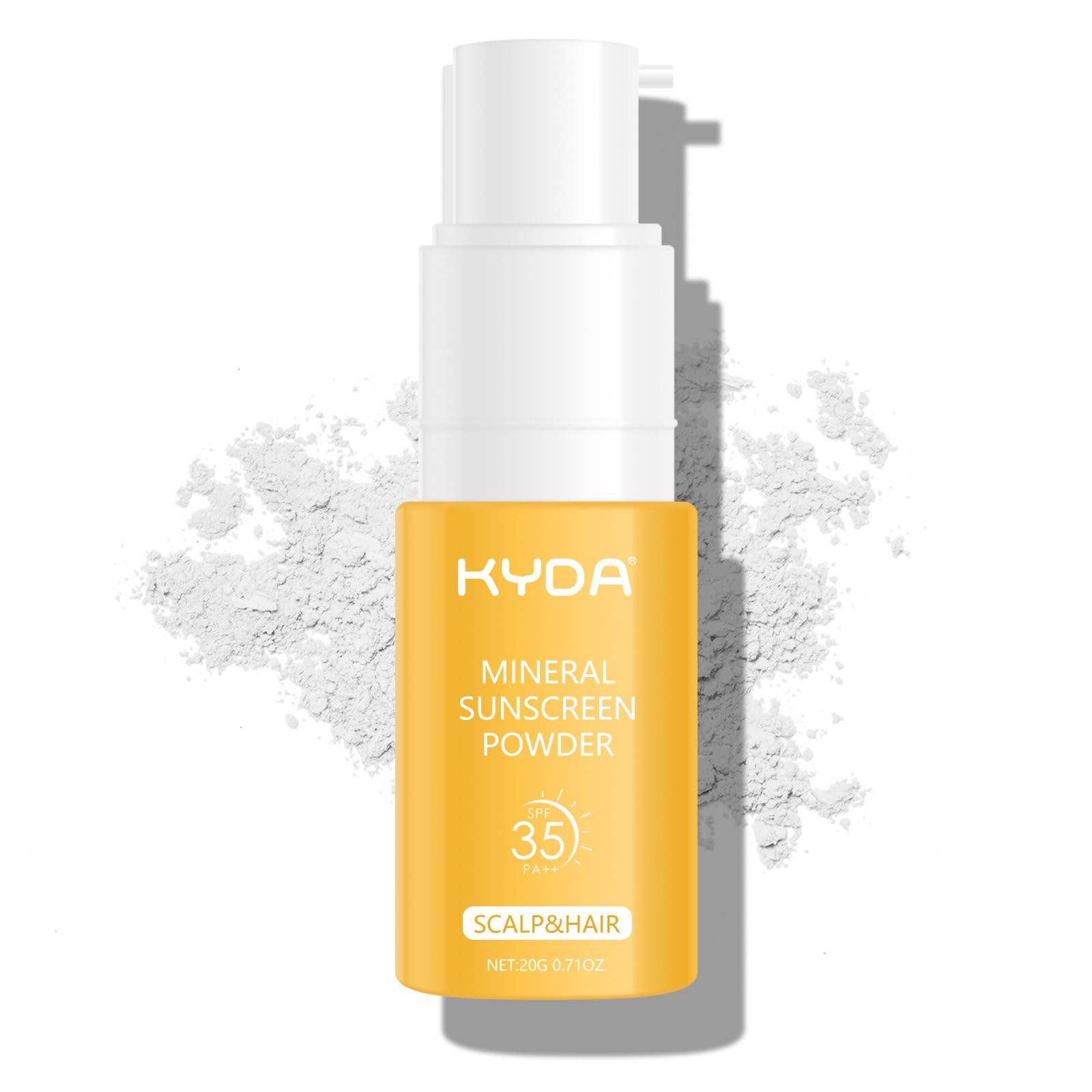 KYDA Poudre minérale Sunscreen Powder, pour Scalp Hair, SPF 35 PA , Scalp Sunscreen Powder, protection UV Spectrum, légère, sans reflet, 0,71 oz (02)