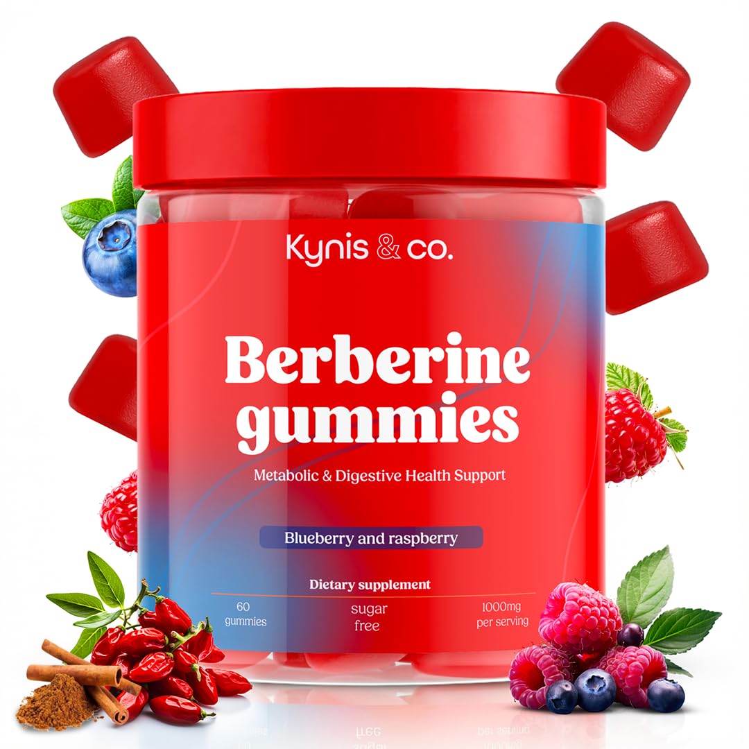 Kynis & co. Berberine Gummies with Ceylon Cinnamon and Apple Cider Vinegar - Sugar Free - Blueberry and Raspberry Flavor - 60ct - Supports metabolic and Digestive Health