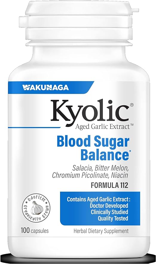 Formula 112 is a synergistic combination of Aged Garlic Extract, Salacia, Bitter Melon, Chromium Picolinate and Niacin.
