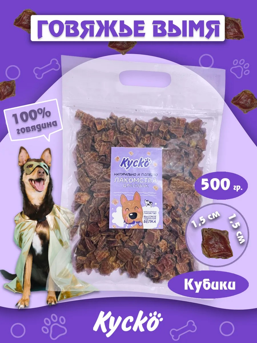 Kysko Вымя говяжье кубиками 500грамм. Сушеные лакомства для собак