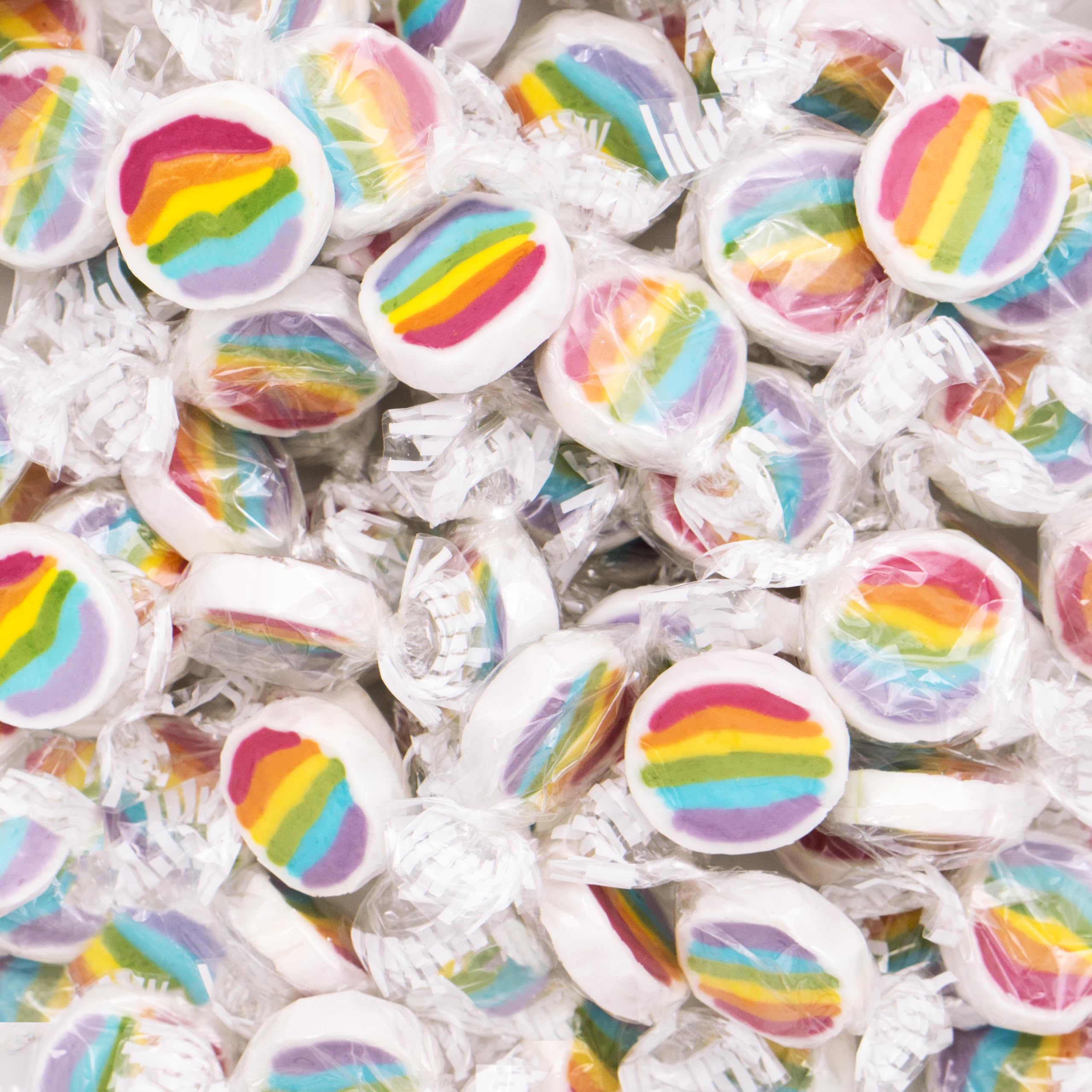 Bonbons arc-en-ciel pour anniversaire, fête, mariage, 500 g – Bonbons Rocks enroulés à la main avec motif arc-en-ciel – Décoration de table Friandise pour invités