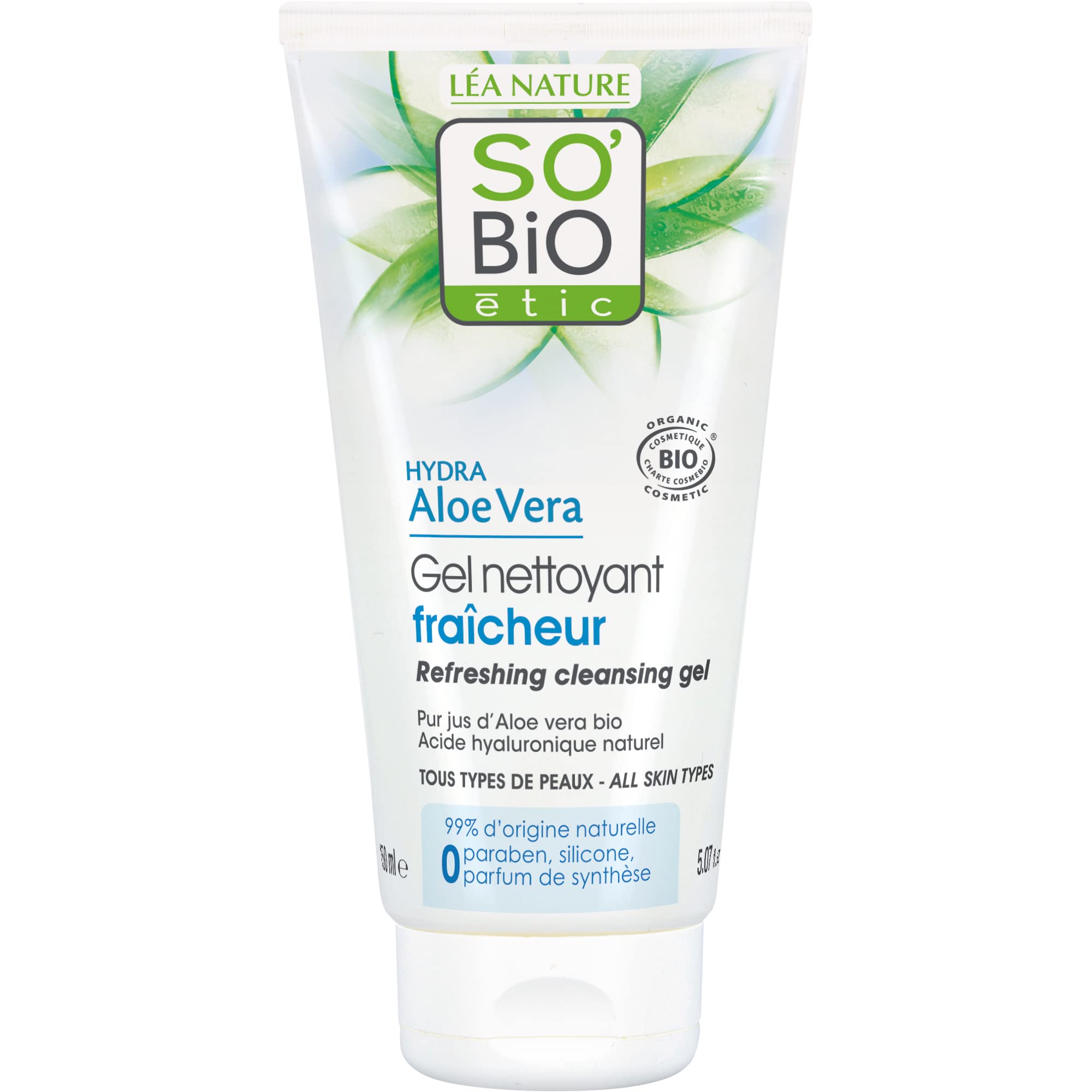 Effectively removes all impurities, excess sebum and traces of make-up without drying out the skin. The skin is cleansed and refreshed and the natural balance of the skin is maintained. Refreshing gel texture. Apply to damp skin, rub until foamy and rinse. So 'bio étic skin care products Offer all the goodness of nature while pleg the senses. The natural and delicate scents and sensory textures of our cosmetics make every beauty routine a privileged moment. Supporter of the "1 for the planet club": 1 of the total sales of its organic brands to finance environmental protection projects. INGREDIENTS Active Ingredients: Pure organic aloe vera juice, natural hyaluronic acid. Aqua Water Eau. Glycerin. Propanediol. Aloe Barbadensis Leaf Juice. Decyl Glucoside. Xanthan gum. Sodium levulinate. Perfume (fragrance). Benzyl alcohol. Cellulose chewing gum. Sodium benzoate. Lactic acid. Aloe Barbadensis Leaf Juice Powder. Benzyl salicylate. Limonene. Citric acid. Sodium hyaluronate.Apply to damp skin, rub until foamy and rinse. Refreshing gel texture. Traces of make-up without drying out the skin. Effectively removes all impurities, excess sebum. A refreshing and gentle cleansing gel.SO'BiO étic Cosmos Biologische Hydra Aloë Vera Verfrissende Reinigingsgel, 150 ml Verwijdert effectief alle onzuiverheden, overtollig talg en sporen van make-up zonder de huid uit te drogen. De huid wordt gereinigd en verfrist en de natuurlijke balans van de huid wordt gehandhaafd. Verfrissende geltextuur. Aanbrengen op een vochtige huid, inwrijven tot schuimig en afspoelen. Dus 'bio étic huidverzorgingsproducten Bieden al het goede van de natuur terwijl je de zintuigen pleziert. De natuurlijke en delicate geuren en sensorische texturen van onze cosmetica maken van elke schoonheidsroutine een bevoorrecht moment. Voorstander van de "1 voor de planeetclub": 1 van de totale verkoop van zijn biologische merken aan de financiering van milieubeschermingsprojecten. INGREDIËNTEN Actieve ingrediënten: Zuiver biologisch aloë vera-sap, natuurlijk hyaluronzuur. Aqua Water Eau. Glycerine. Propaandiol. Aloë Barbadensis Bladsap. Decyl Glucoside. Xanthaangom. Natriumlevulinaat. Parfum (geur). Benzylalcohol. Cellulosekauwgom. Natriumbenzoaat. Melkzuur. Aloë Barbadensis Bladsap Poeder. Benzylsalicylaat. Limoneen. Citroenzuur. Natriumhyaluronaat.Aanbrengen op een vochtige huid, inwrijven tot schuimig en afspoelen. Verfrissende geltextuur. Sporen van make-up zonder de huid uit te drogen. Verwijdert effectief alle onzuiverheden, overtollig talg. Een verfrissende en zachte reinigingsgel.