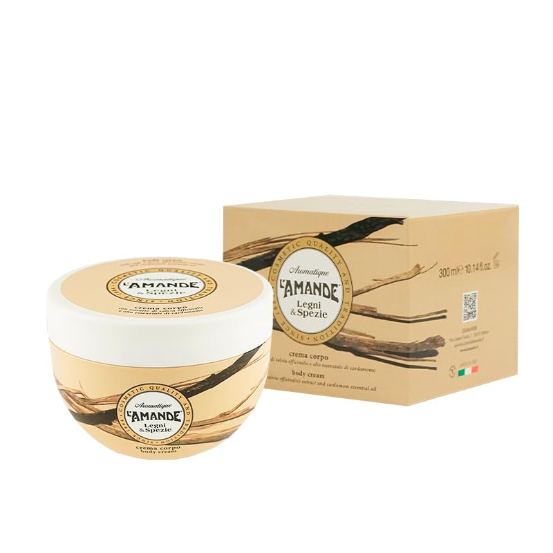 The Almond Body Cream has been designed to provide intensely nourishing and toning action, meeting the needs of dry and dull skin. Applied to the body with a gentle massage, the cream penetrates deeply, gradually releg its nourishing and toning benefits, for soft, supple, and visibly healthier skin throughout the day. Thanks to sage extract and argan oil, this cream maintains the skin's hydrolipidic film balance. The purifying properties of sage and the nutrients of argan work in synergy for healthy, radiant skin. Enriched with a multifaceted woody and spicy bouquet of cedarwood and cardamom, as well as refreshing notes of sage and citrus, this body cream offers a refined and invigorating olfactory experience. Free from PEGs, parabens, mineral oils, silicones, and colorants, this cream is dermatologically tested to guarantee maximum safety, even for the most sensitive skin. For over a century, L'Amande has been synonymous with quality and tradition, steeped in the grand tradition of Mediterranean soap making. Faithful to this important heritage, L'Amande soaps are produced in a cauldron, using the ancient method known as the Marseilles method, by cooking the oils and raw materials for six days and six nights.L'Amande, one of the 5 oldest soaps in the world: for over a century, L'Amande has been synonymous with quality in the grand tradition of Mediterranean soap making. Faithful to this important heritage, L'Amande soaps are produced in a cauldron, according to the ancient method known as the Marseilles method, by cooking the oils and raw materials for 6 days and 6 nights. Safe and dermatologically tested formula: free of PEGs, parabens, mineral oils, silicones, and colorants, this cream is dermatologically tested to guarantee maximum safety, even for the most sensitive skin. Elegant and refreshing fragrance: enriched with a multifaceted bouquet of woody and spicy notes of cedarwood and cardamom, as well as refreshing hints of sage and citrus, this body cream provides a refined and invigorating olfactory experience. Purifying and hydrating action: Thanks to sage extract and argan oil, this cream maintains the skin's hydrolipidic film balance. The purifying properties of sage and the nutrients of argan work synergistically for healthy, radiant skin. Nourishing and toning body cream: Almond Body Cream has been designed to provide intensely nourishing and toning action, meeting the needs of dry and dull skin. Applied to the body with a gentle massage, the cream penetrates deeply, gradually releg its nourishing and toning benefits, for soft, supple, and visibly healthier skin throughout the day.L'AMANDE - Crème corporelle parfumée avec vitamine E, acide hyaluronique et huile d'argan, crème hydratante pour peau sèche à action nutritive et tonifiante, elle absorbe rapidement, 300 ml, fabriquéeDESCRIPTION DU PRODUIT La Crème Corps L'Amande a été conçue pour offrir une action intensément nourrissante et tonifiante, répondant aux besoins de la peau sèche et peu tonique. Appliquée sur le corps en massant doucement, la crème pénètre en profondeur, libérant progressivement ses bienfaits nourrissants et tonifiants, pour une peau douce, élastique et visiblement plus saine tout au long de la journée. Grâce à l'extrait de sauge officinalis et à l'huile d'argan, cette crème maintient le film hydrolipidique de la peau équilibré. Les propriétés purifiantes de la sauge et les nutriments de l'argan travaillent en synergie pour une peau saine et éclatante. Enrichie d'un bouquet aux mille facettes boisées et épicées du bois de cèdre et de la cardamome, ainsi que des notes rafraîchissantes de sauge et d'agrumes, cette crème corporelle apporte une expérience olfactive raffinée et revigorante. Sans peg, parabènes, huiles minérales, silicones et colorants, cette crème est testée dermatologiquement pour garantir une sécurité maximale même pour les peaux les plus sensibles. Depuis plus d'un siècle L'Amande est synonyme de qualité dans la tradition, la grande tradition de la savonnerie méditerranéenne. Fidèle à cet important héritage encore aujourd'hui, les savons L'Amande sont produits en chaudière, selon l'ancienne méthodologie connue sous le nom de Marseillais en cuisant les huiles et les matières premières pendant 6 jours et 6 nuitsL'AMANDE, L'un des 5 savons les plus anciens au monde : depuis plus d'un siècle, l'Amande est synonyme de qualité dans la tradition, la grande tradition de la savonnerie méditerranéenne. Fidèle à cet important héritage encore aujourd'hui, les savons L'Amande sont produits en chaudière, selon l'ancienne méthodologie connue sous le nom de Marseillais en cuisant les huiles et les matières premières pendant 6 jours et 6 nuits. Formule sûre et testée dermatologiquement : sans peg, parabènes, huiles minérales, silicones et colorants, cette crème est testée dermatologiquement pour garantir une sécurité maximale même pour les peaux les plus sensibles. Parfum élégant et rafraîchissant : enrichi avec un bouquet aux mille facettes boisées et épicées du bois de cèdre et de la cardamome, ainsi que des notes rafraîchissantes de sauge et d'agrumes, cette crème corporelle apporte une expérience olfactive raffinée et revigorante. Action purifiante et hydratante : grâce à l'extrait de sauge officinalis et à l'huile d'argan, cette crème maintient le film hydrolipidique de la peau équilibré. Les propriétés purifiantes de la sauge et les nutriments de l'argan travaillent en synergie pour une peau saine et radieuse. Crème corps nourrissante et tonifiante : la crème corporelle Amande a été conçue pour offrir une action intensément nourrissante et tonifiante, répondant aux besoins de la peau sèche et peu tonique. Appliquée sur le corps en massant doucement, la crème pénètre en profondeur, libérant progressivement ses bienfaits nourrissants et tonifiants, pour une peau douce, élastique et visiblement plu