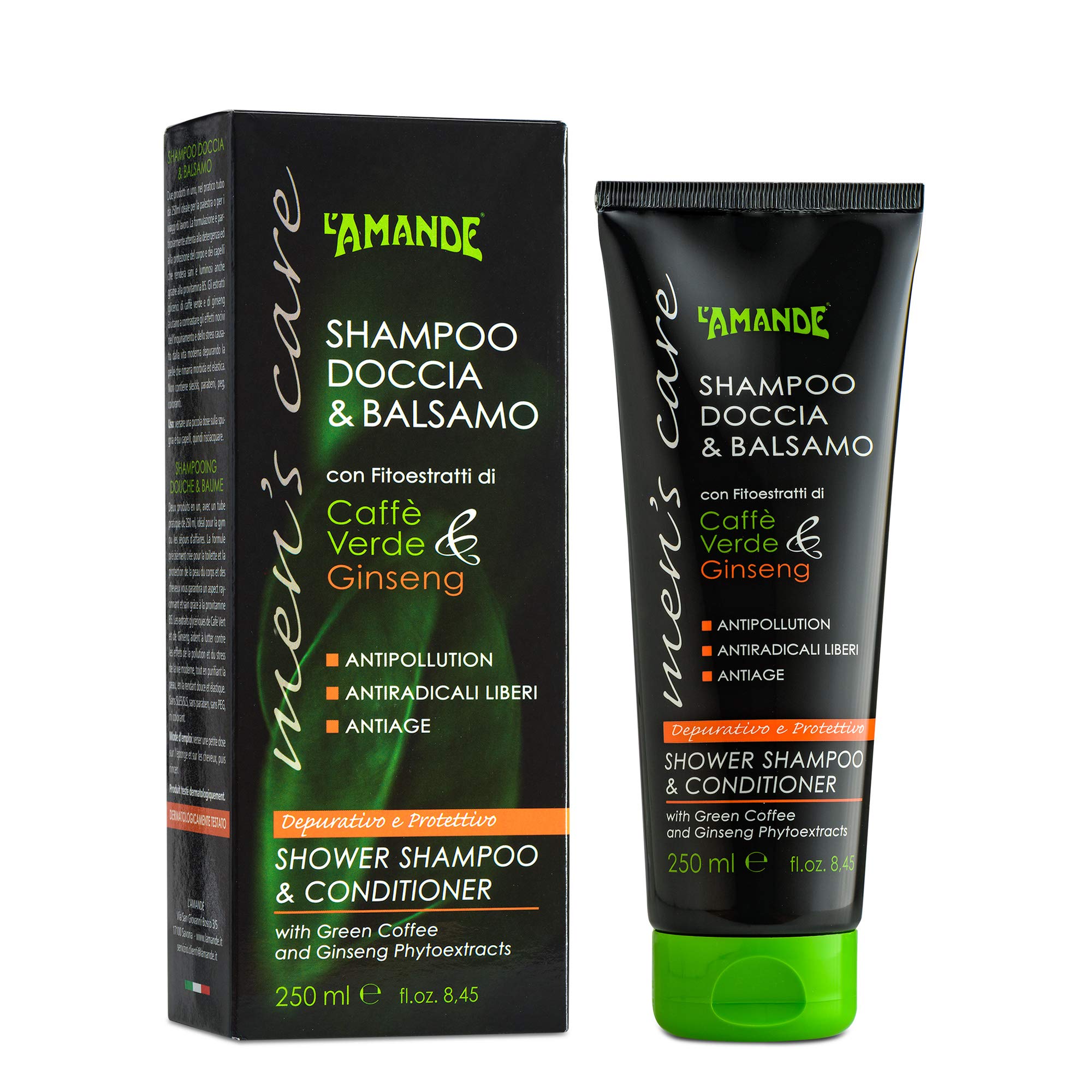 Two products in one, in a convenient 250ml tube, ideal for the gym or business trips. The formula is particularly focused on cleansing and protecting the body and hair, leaving them healthy and radiant, thanks to provitamin B5. Glycemic extracts of green coffee and ginseng help combat the harmful effects of pollution and stress caused by modern life, purifying the skin and leaving it supple and elastic. INGREDIENTS Aqua (Water), Sodium Myrtle Sulfate, Pro-L Betaine, Parfum (Fresh), Glaserin, Coffee Arabica (Coffee) Seed Extract, Panax Genicum Root Extract, Panthenol, Guar Hydroxylium Chloride, Chromium D-Hydroxamic Acid, Caprylyl L-Glycol, Lactic Acid, Limonene.7 Telescopic Metals: Nickel, Piplomb, Arsenic, Cadmium, Mercury, Anticarbon, and Chromium to protect even the most sensitive skin by reducing the risk of allergic reactions. WITH GREEN COFFEE AND GINSENG EXTRACTS. PARABEN-FREE FORMULATION. Directions: Pour a small amount onto the sponge and hair, then rinse. Dermatologically tested. Product weight: 250 ml.SHAMPOO DOCCIA BALS.DEPUR.MAN'S CARE 250 ML DéboucheurDESCRIPTION DU PRODUIT DESCRIPTION DU PRODUIT Deux produits en un, dans un tube pratique de 250 ml idéal pour la salle de sport ou pour les voyages de travail. La formulation est particulièrement attentive à la détergence et à la protection du corps et des cheveux qui rendra sains et lumineux, même grâce à la provitamine B5. Les extraits glycémiques de café vert et de ginseng aident à lutter contre les effets nocifs de la pollution et du stress causés par la vie moderne en épurant la peau qui restera souple et élastique. INGRÉDIENTS Aqua (Water), Sodium Myrth SuLFate, Caméra proy-L Betaine, Parfum (frais), Glaserin, Coffee Arabica (coffee) Seed Extract, Panax Genig Root Extract, Panthenol, Guar HydroxyylUM Chlora, Chromydroxamic Acide D, CAPRYLY. L GLYCOL, LACTIC ACID, LIMONENE.7 Métaux Télescopiques : Nickel, Piplomb, Arsenique, Cadmio, Mercure, Anticarbone et Chrome afin de protéger les peaux les plus sensibles en réduisant les risques de réactions allergiques. AVEC EXTRACTES DE CAFÉ VERT ET GINSENG FORMULAATION ESSSANT DE parabènes. Utilisation : verser une petite dose sur l'éponge et les cheveux, puis rincer. Testé dermatologiquement. Poids du produit : 250 ml.