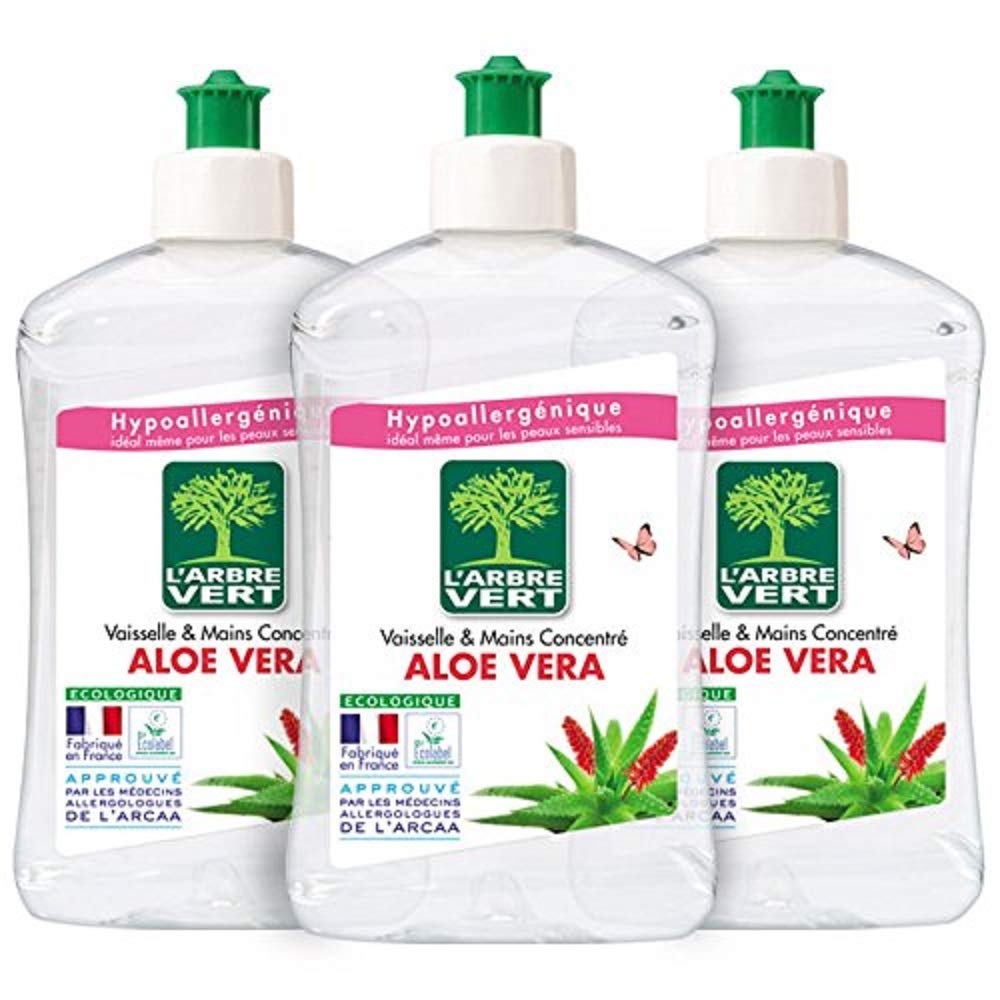 L'Arbre Vert - Liquide Vaisselle 2 en 1 Aloe Vera et Nettoyant Mains - 500 ml - Lot de 3