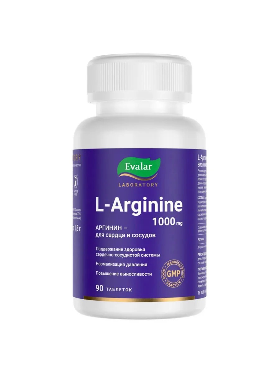 Эвалар L-Аргинин Эвалар Лаборатория/Evalar 1000мг 90шт -1 уп.
