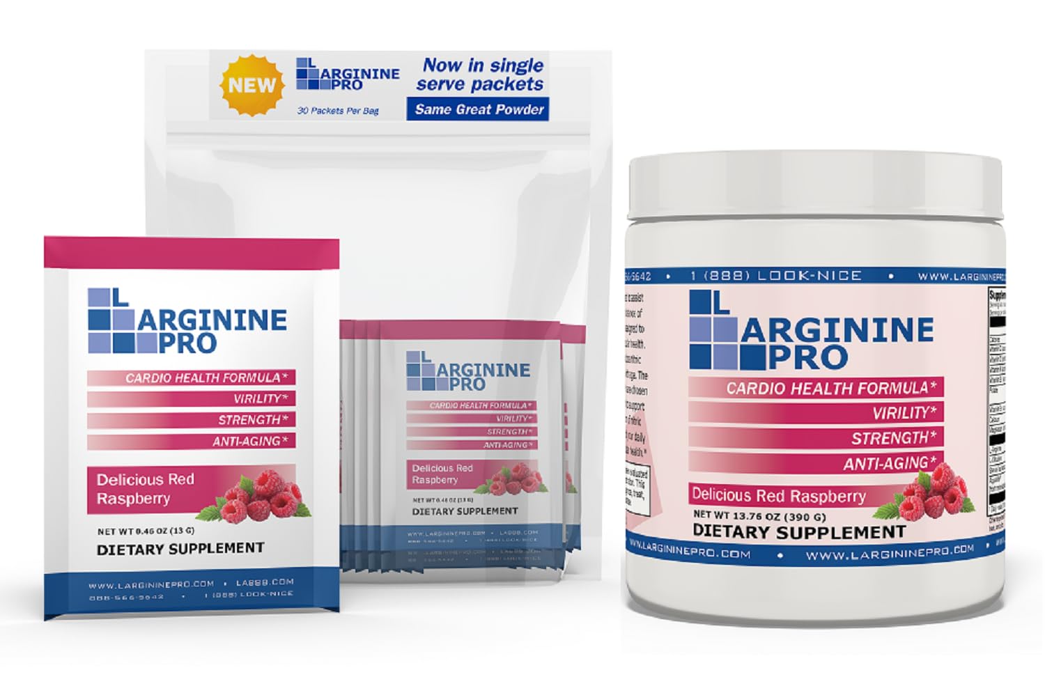 L-ARGININE PRO 2-Pack Raspberry Jar and 30 Single Serve Packets Great Tasting! | Blood Flow | Pre-Workout Drink | with Vitamins C B6 B12 K & More