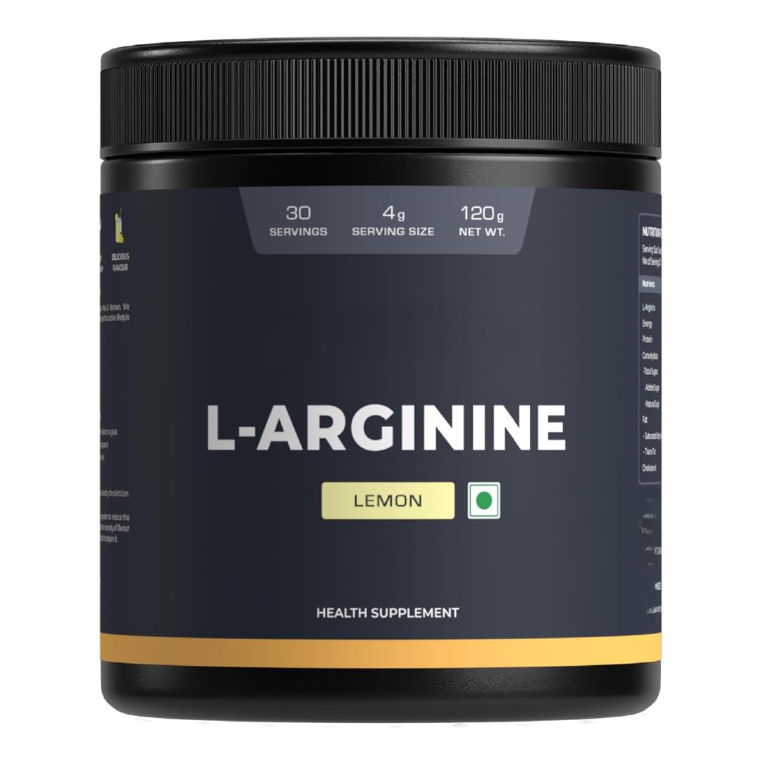 L-Arginine Supplement Lemon Flavor Pre Workout Amino Acid for Endurance Muscle Building & Help Muscle Recovery -120 Gm Powder