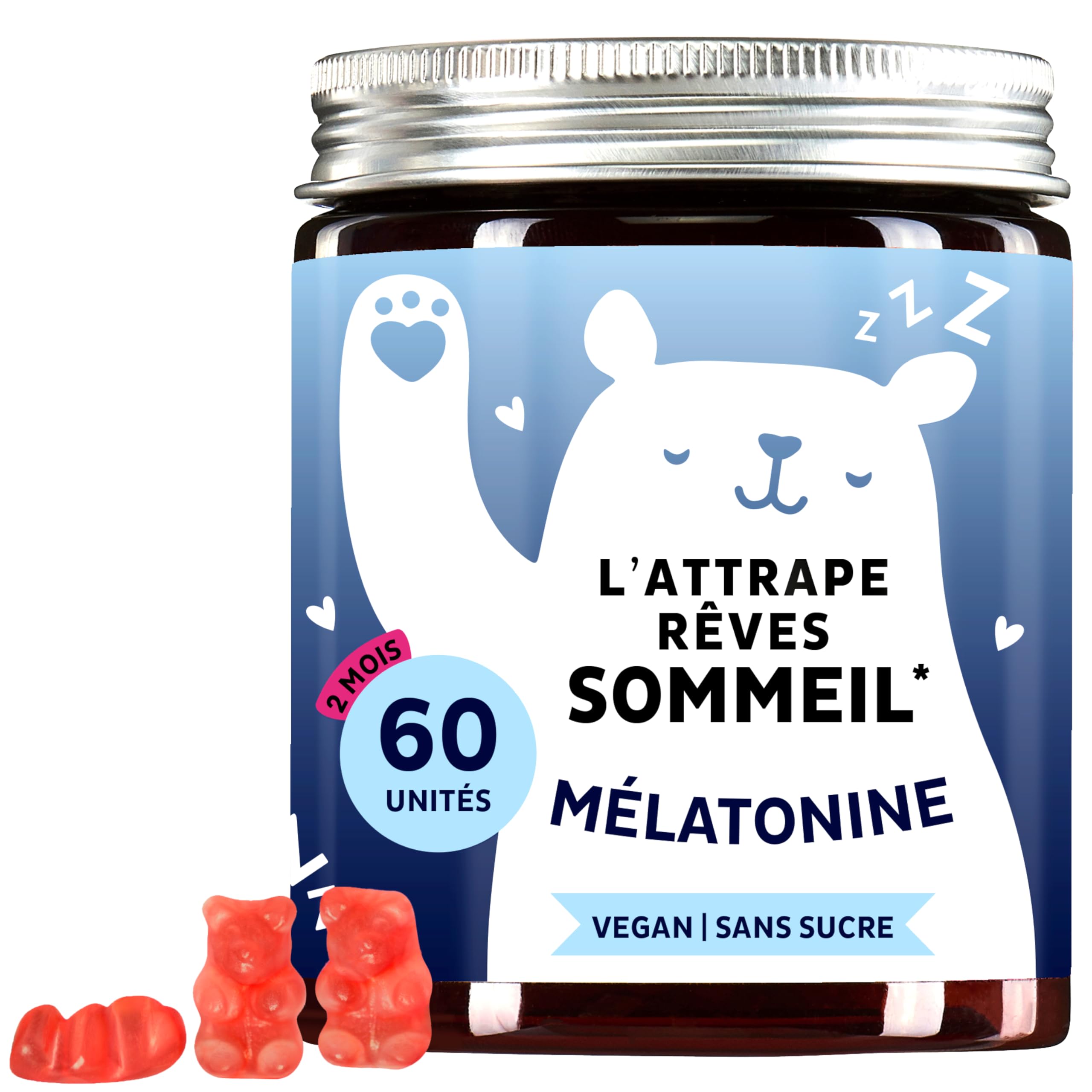 L'Attrape Rêve Sommeil – Sommeil naturel – 1mg de Mélatonine avec Vitamine B6 – 60 Unités (2 mois) – Sans sucre, Vegan – Bears with Benefits NEW