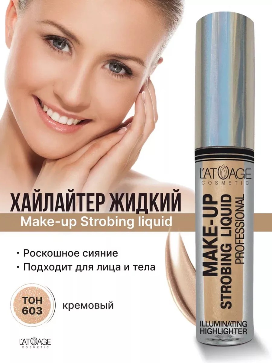 Make-up Strobing Liquid Face Highlighter is a cosmetic product that will help you create a unique makeup look and attract admiring glances with its sparkle. The creamy texture is ideal for application to eyelids and eyes to add mystery and allure. It will perfectly highlight your natural beauty, giving you a fresh and radiant look.