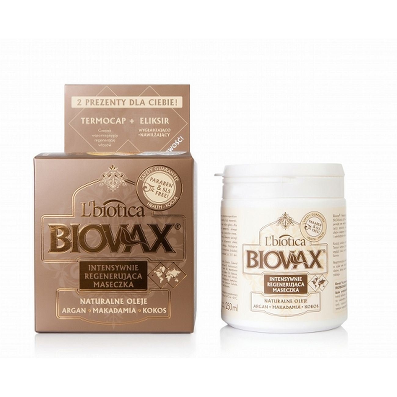 Biovax intensive regenerating mask, 250 ml, argan coconutamacadamia oil Biovax Natural Coconut Macadamia Argan Oil is a Kind of Bioregeneration for Your Hair, so they pass on impressive transformation.The composition of carefully selected precious oils ensures comprehensive revitalization and rejuvenation of the hair over the entire length. Treatment releases natural beauty and energy of your hair, restores the sensual appearance and keeps it in good shape.Rich mask with a velvety texture hides all valuable boon oils that penetrate the hair during treatment. Biovax is a guarantee of healthy hair. Biovax recipe masks consist of three natural oils that are rich in valuable nutrients that completely revitalize both hair and the scalp without the effect of the stress: Argan oil (Morocco) with its exceptionally high content of vitamin E (at least 550mg l) protects the hair from the destructive effects of free radicals and UV rays.It inhibits the aging process.If the hair gives shine, elasticity, it smoothes it nicely.Argan oil in the Biovax mask is a product 100 organic, cold -pressed, chemically unchanged.It is certified by Ecocert. Macadamia oil (Hawaii) is a rich source of naturally occurring rare palmito-oleic C16: 1, harmonious function of natural skin lipids.It nourishes the scalp perfectly and guarantees the right growth of healthy hair. Coconut oil (India) penetrates the deep layers of the hair fiber, which actively inhibits the loss of its nutrients.It strengthens the hair structure to prevent you from breaking.It offers a strong and long -lasting moisturizing effect. Scope of delivery: 1 x 250 ml of glass hair mask, 1 x 1.5 ml hair serum A E, 1 x termoCapBiovax Intensiv Regenerierende Maske, 250 ml, Argan-Kokosmacadamia-Öl BIOVAX Natural Coconut Macadamia Argan Oil is a kind of bioregeneration for your hair, so that they pass an impressive transformation. Die Zusammensetzung sorgfältig ausgewählter kostbarer Öle sorgt für eine umfassende Revitalisierung und Verjüngung des Haares über die gesamte Länge. Die Behandlung setzt natürliche Schönheit und Energie Ihres Haares frei, stellt das sinnliche Aussehen wieder her und hält es in guter Form. Reichhaltige Maske mit samtiger Textur verbirgt alle wertvollen Boon-Öle, die während der Behandlung in das Haar eindringen. Biovax ist ein Garant für gesundes Haar. Biovax Rezeptmasken bestehen aus drei natürlichen Ölen, die reich an wertvollen Nährstoffen sind, die sowohl das Haar als auch die Kopfhaut vollständig revitalisieren, ohne die Wirkung der Belastung: Arganöl (Marokko) schützt mit seinem außergewöhnlich hohen Gehalt an Vitamin E (mindestens 550mg l) das Haar vor den zerstörerischen Auswirkungen freier Radikale und UV-Strahlen. Es hemmt den Alterungsprozess. Verleiht dem Haar Glanz, Elastizität, glättet es schön. Arganöl in der Maske BIOVAX ist ein Produkt 100 organisch, kaltgepresst, chemisch unverändert. Es ist von Ecocert zertifiziert. Macadamia-Öl (Hawaii) ist eine reichhaltige Quelle von natürlich vorkommenden seltenen Palmito-Oleic C16:1, harmonische Funktion der natürlichen Hautlipide. Es nährt perfekt die Kopfhaut und garantiert das richtige Wachstum von gesundem Haar. Kokosöl (India) dringt in die tiefen Schichten der Haarfaser ein, was aktiv den Verlust seiner Nährstoffe hemmt. Es stärkt die Haarstruktur, um zu verhindern, dass sie brechen. Es bietet eine starke und langanhaltende feuchtigkeitsspendende Wirkung. Lieferumfang: 1 x 250 ml Glas Haarmaske, 1 x 1,5 ml Haarserum A E, 1 x termocapL'Biotica Biovax 250ml Argan Hair Mask