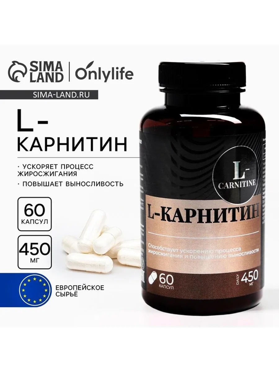 WHEN PLACING AN ORDER, PLEASE ASK THE MANAGER FOR CURRENT EXPIRY DATES. Ingredients: L-carnitine tartrate, gelatin capsule (gelatin, water, titanium dioxide - colorant), microcrystalline cellulose - carrier. Directions: Adults take 1-2 capsules daily with meals. Duration of use: 1 month. If necessary, the dose can be repeated. Repeat doses are possible throughout the year. Storage conditions: Store in a place protected from direct sunlight and out of the reach of children, at a temperature of 5 C to 25 C and a relative humidity of no more than 75%, in a sealed, undamaged package. Expiry date: 24 months. Warning: Dietary supplements are included in the category of non-refused goods. The goods can be returned only in case of defect.