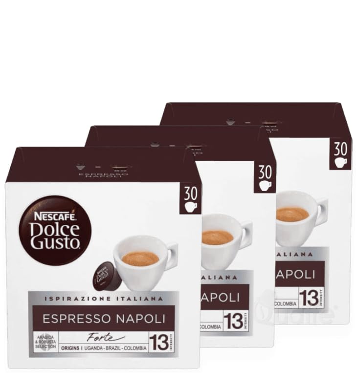 NESCAFÉ Dolce Gusto Espresso Napoli Intensity 13 13. Inspired by the finest Neapolitan coffees, this is a strong, roasted espresso that captures the vibrancy of the city of Naples. Savor its dense, dark crema and rich body, and let yourself be seduced by the enveloping and lingering taste of an espresso inspired by southern Italy. Espresso Napoli is created from a special selection of Arabica and Robusta beans, crafted by our coffee experts for an espresso with a unique style. Each pack contains 90 capsules designed for the Nescafé Dolce Gusto machine system.