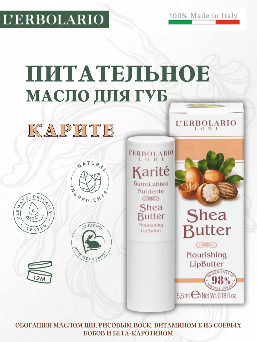 КомплектацияL'Erbolario КАРИТЕ Питательное масло для губ 5,5 мл
