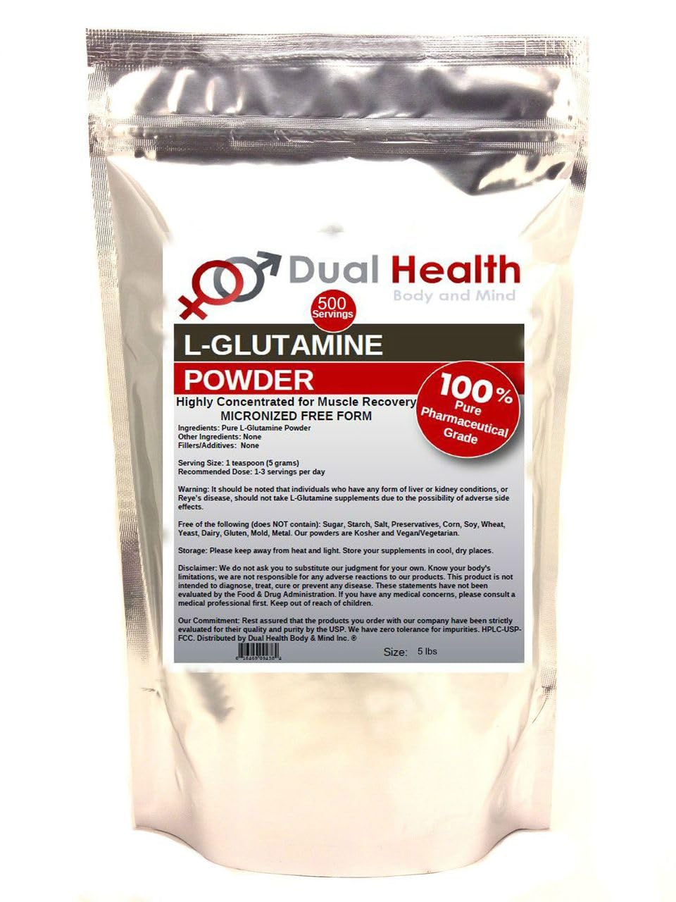 The human genetic code is made up of 20 amino acids. Glutamine is one of them. Therefore, you are born with glutamine in your body. It is one of the building blocks of human beings. L-Glutamine can also be found in high protein foods like fish, red meat, beans and dairy products. When you exercise or play sports, the body's supply of amino acids is used up. Most of the time, the body may require more glutamine than it can produce.SUSTAINABILITY: We are a Green Company and smaller batches reduce the risk of substantial waste and take up fewer resources in production. All of our supplements at Dual Health Body and Mind are manufactured according to cGMP Standards to guarantee quality for manufacturing, packaging, labeling, and holding operations. Every batch is independently tested by a third party to make certain that you receive high-caliber supplements. SMALL BATCHES: We believe in Small Batch manufacturing to avoid the risk of wasting time, money, and resources that can come with committing to a large-scale inventory. Producing Small Batch Supplements improves quality control, flexibility, increased efficiency, speed in order management and most importantly better affordability for our customers. We can test our components in small batches more often to catch errors and greatly improve the function of the end results. L-GLUTAMINE SUPPORTS: Immune Systems, Digestion GI Support, GERD, Leaky Gut Health, Muscle and Body Building and Recovery Periods. Mobility, Energy, Stamina, Endurance, Strength. This has been our best-selling L-Glutamine formula since 2012. FREE FROM: Fillers, Additives, Heavy Metals, GMO's, Soy, Gluten, Corn, Dairy, Tree nuts, and Artificial Flavors. We do not use anti-caking agents. Our supplements are Vegan Vegetarian. We have zero tolerance for impurities. HAND SCOOPED: Each and every bag is hand filled per order, specifically per customer to ensure premium quality and freshness. These are not products sitting on a shelf in a random warehouse, they are filled, sealed, labeled, hand stamped and personally shipped only for you and only by us from start to finish.