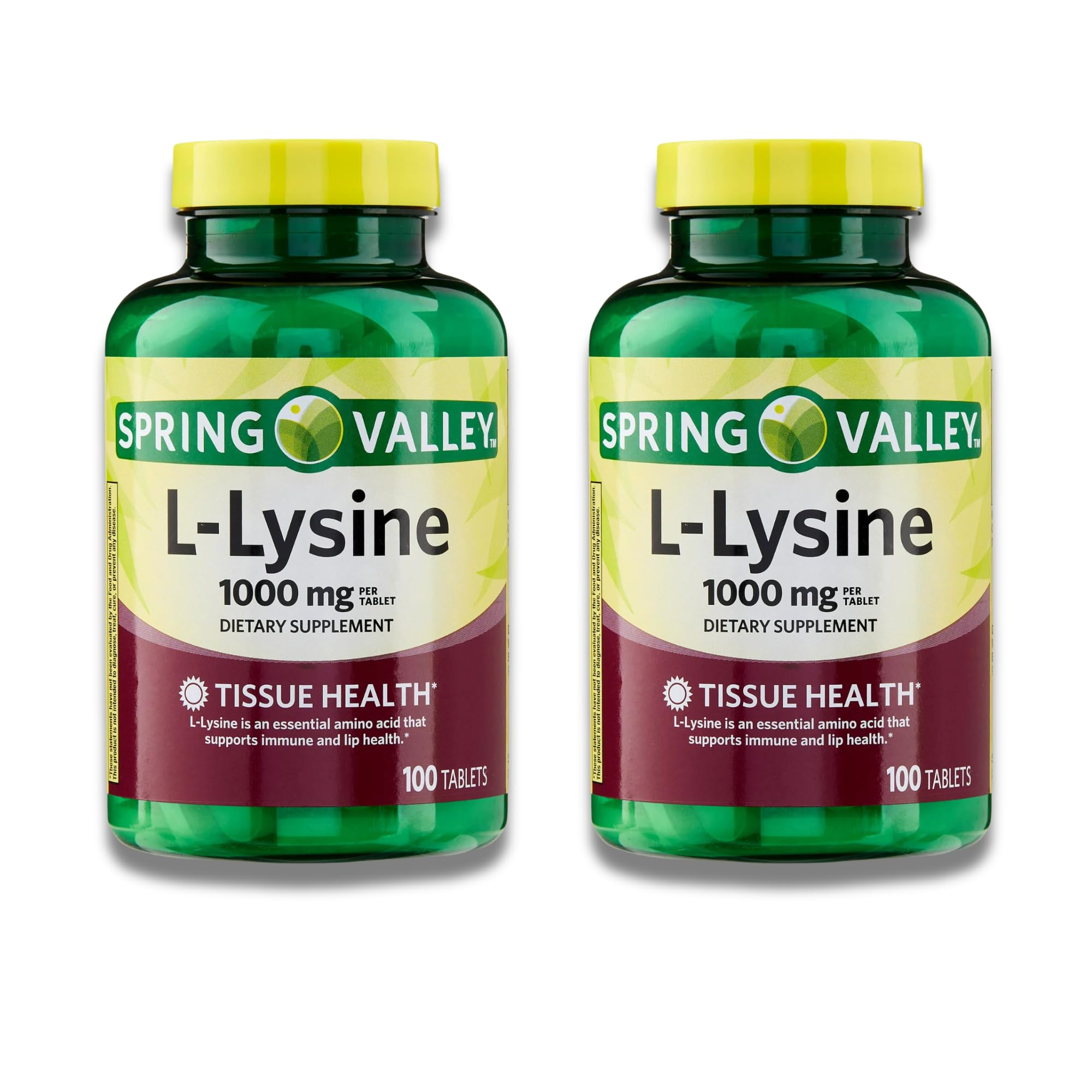 L-Lysine 1000mg Tablets Lysine Essential Amino Acid for Immune Support Collagen Formation and Skin Health High Potency Lysine Supplement 100 Count Gluten-Free 100 Count (Pack of 2)