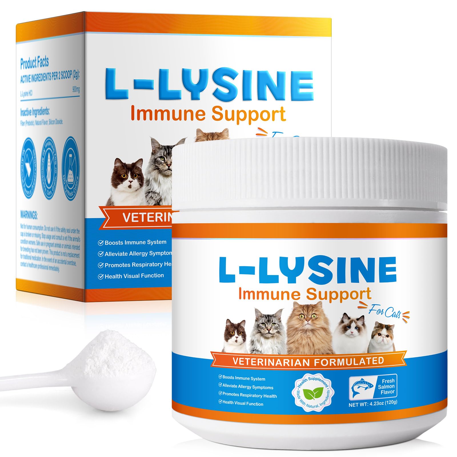 L-Lysine Supplement for Cats 900mg/2 Scoop Lysine Powder Promoting A Healthy Immune System Maintaining Respiratory System and Eye Vision Function Health 4.23oz (120g)