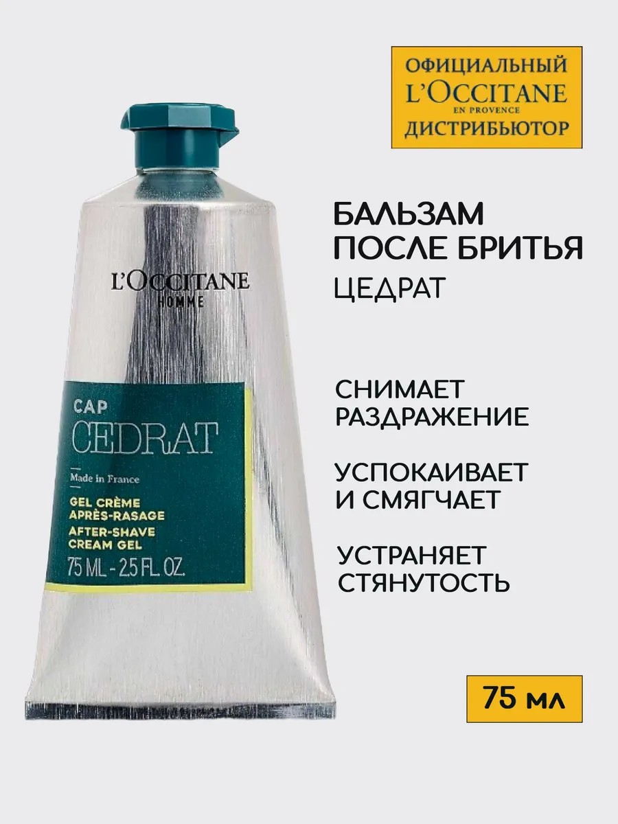 A soothing aftershave balm for men. This is the ideal product for those who value high-quality care. L'Occitane's men's line of cosmetics contains natural ingredients. Enriched with plant-based glycerin and citrate extract, this product softens. The formula is specially designed to relieve irritation. It reduces the feeling of tightness, redness, and burning caused by frequent irritation of the sensitive areas of the neck, cheeks, and chin. Enriched with citrate and birch extract from Provence, it protects the epidermis from external aggressors for smoothness, cleanliness, and rugged beauty. Thanks to its light texture, it is quickly absorbed. This cream-gel is the choice of professional barbers. Directions: Apply after shaving, concentrating on irritated areas.