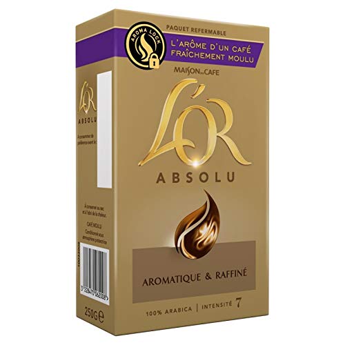 Born from a unique blend of great Arabicas, L'OR Absolu reveals a balanced and refined taste and lightly roasted notes.Absolu 250G. L'OR. Ground coffee. Coffees, coffee filters. Sweet groceries. Né de l assemblage unique de grands Arabicas, L OR Absolu vous révèle un goût équilibré et raffiné et des notes légèrement grillées.Absolu 250G. L'OR. Café moulu. Cafés, Filtres à café. Epicerie sucrée.