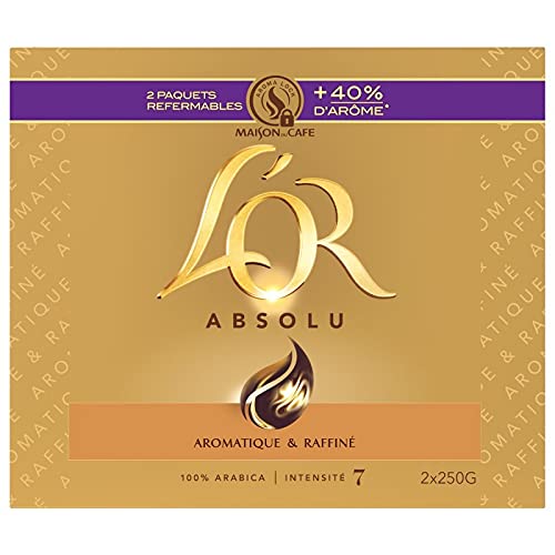 : Born from the unique blend of premium Arabica beans, L'OR Absolu reveals a balanced and refined taste with slightly roasted notes. Ingredients: 100 Arabica Coffee.Absolu 500G. L'OR. Ground coffees, beans and chicories. Coffees. Sweet Groceries.Description du produit Né de l assemblage unique de grands Arabicas, L OR Absolu vous révèle un goût équilibré et raffiné et des notes légèrement grillées. Ingrédients Café 100 Arabica.Absolu 500G. L'OR. Cafés moulus, grains et chicorées. Cafés. Epicerie Sucrée.L'OR - Absolu 500G - Lot De 3