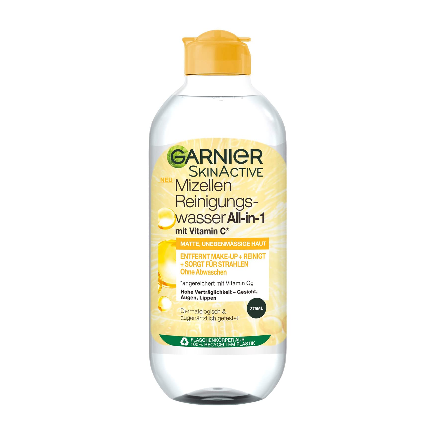 With the Garnier SkinActive micelle cleansing water All-in-1 with vitamin C, the skin is gently cleansed and at the same time effectively freed from make-up. Thanks to the innovative micellar cleaning technology, impurities and dirt particles are magnetically attracted. Tired skin is brought to radiance, because the vitamin C-enriched formula not only makes the complexion appear more even, but also provides a special glow effect. The gentle cleansers used in the facial wash can remain on the face – no rubbing or rinsing required. The cleansing water is very tolerable and is therefore optimally suitable for all skin types. INGREDIENTS aqua water, hexylene glycol, glycerin, poloxamer 184, Peg-40 hydrogenated castor oil, ascorbyl glucoside, disodium cocoamphodiacetate, diodium edta, myrtrimonium bromide, perfume fragrance (F.I.L. Z283390 1). INSTRUCTIONS FOR USE The Garnier SkinActive Micellar Cleansing Water All-in-1 with Vitamin C is ideal for gentle use in the morning and evening. Sufficiently moisten a cotton pad with facial water and then gently cleanse the skin. No rubbing or rinsing is necessary. See moreContents: 1 x Garnier Skin Active Micelle Cleansing Water All-in-1 with Vitamin C, capacity: 375 ml. Bottle body made of 100 recycled plastic, high tolerance for face, eyes and lips, dermatologically and ophthalmologist tested. Use: Apply cleanser to a cotton pad morning and evening and gently rub over face, eyes and lips, no rubbing or rinsing required. Result: cleansed skin and more even complexion, radiant glow for a refreshed complexion, ideally prepared skin for the next facial cream. Cleansing facial water with micellar cleansing technology and vitamin C for all skin types, to remove waterproof makeup and dirt.Garnier All-in-1 micellair reinigingswater met vitamine C voor een stralende teint, make-up remover en gezichtsreiniging voor vermoeide huid, Skin Active, 1 x 375 ml Met het Garnier SkinActive micel-reinigingswater All-in-1 met vitamine C wordt de huid voorzichtig gereinigd en tegelijkertijd effectief van make-up bevrijd. Dankzij de innovatieve micellaire reinigingstechnologie worden onzuiverheden en vuildeeltjes magnetisch aangetrokken. Vermoeide huid wordt tot stralen gebracht, omdat de met vitamine C verrijkte formule de teint niet alleen gelijkmatiger laat lijken, maar bovendien een bijzonder glow-effect geeft. De in het gezichtswater gebruikte zachte reinigingsmiddelen kunnen in het gezicht blijven zitten – wrijven of afspoelen is niet nodig. Het reinigingswater is zeer verdraagbaar en is daarom optimaal geschikt voor alle huidtypes. INGREDIËNTEN aqua water, hexyleenglycol, glycerine, poloxamer 184, Peg-40 gehydrogeneerde castorolie, ascorbyl glucoside, disodium cocoamfodiacetaat, diodium edta, myrtrimonium bromide, parfum geur (F.I.L. Z283390 1). GEBRUIKSAANWIJZING Het Garnier SkinActive Micellair reinigingswater All-in-1 met vitamine C is optimaal geschikt voor voorzichtig gebruik 's ochtends en avonden. Een wattenschijfje met het gezichtswater voldoende bevochtigen en de huid vervolgens zachtjes reinigen. Wrijven of afspoelen is niet nodig. Meer bekijkenInhoud: 1 x Garnier Skin Active-micel-reinigingswater All-in-1 met vitamine C, inhoud: 375 ml. Fleslichaam van 100 gerecycled plastic, hoge verdraagzaamheid voor gezicht, ogen en lippen dermatologisch en door oogartsen getest. Gebruik: 's ochtends en 's avonds cleanser op een wattenschijfje aanbrengen en zachtjes over gezicht, ogen en lippen wrijven, geen wrijven of afspoelen nodig. Resultaat: gereinigde huid en gelijkmatigere teint, stralende gloed voor een verfrist huidbeeld, ideaal voorbereide huid voor de volgende gezichtscrème. Reinigend gezichtswater met micellaire reinigingstechnologie en vitamine C voor alle huidtypes, voor het verwijderen van waterdichte make-up en vuil.