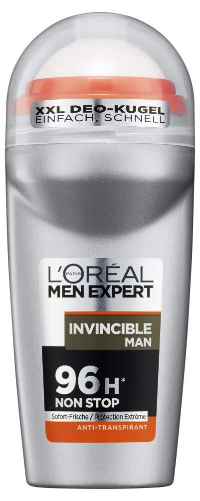 Non-stop running? Men Expert Invincible Men roll-on deodorant provides dryness and freshness for up to 96 hours. No matter how stressful the situation, you can count on your deodorant.Instant freshness that's gentle on skin. With a long-lasting fresh scent. High-performance technology noticeably reduces perspiration. Ultra-moisture-wicking formula for a long-lasting dry effect. Deodorant for 96 hours of non-stop protection against perspiration and body odor. Nonstop sous courant ? Le déodorant roll-on Men Expert Invincible Men procure sécheresse et fraîcheur jusqu'à 96 heures. Quelle que soit la situation de stress, vous pouvez compter sur votre déodorant.Fraîcheur instantanée douce pour la peau. Avec un parfum frais longue durée. La technologie haute performance réduit sensiblement la transpiration. Formule ultra anti-humidité pour un effet sec durable. Déodorant pour 96 heures de protection non stop contre la transpiration et les odeurs corporelles.