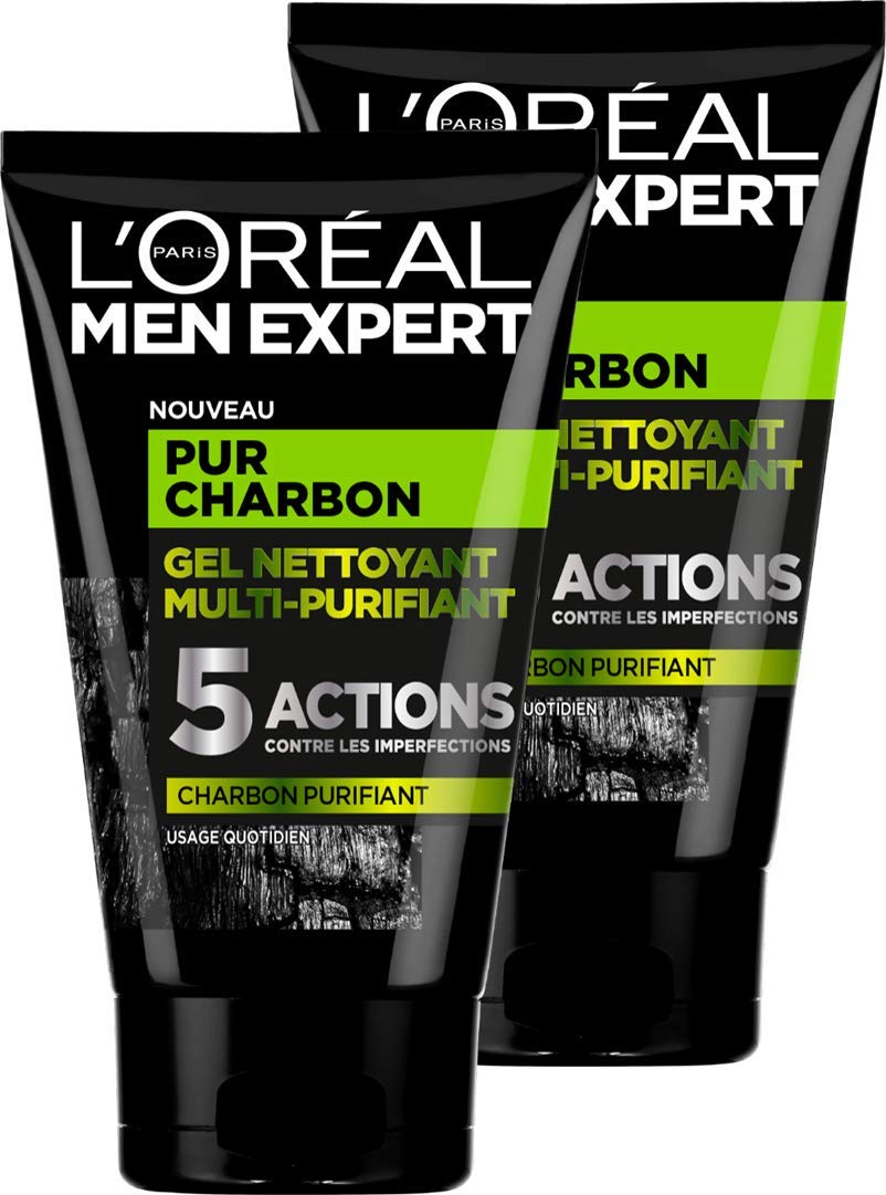 L'Or al Men Expert Pure Charcoal Multi-Purifying Face Cleansing Gel for Men 100 ml - Pack of 2