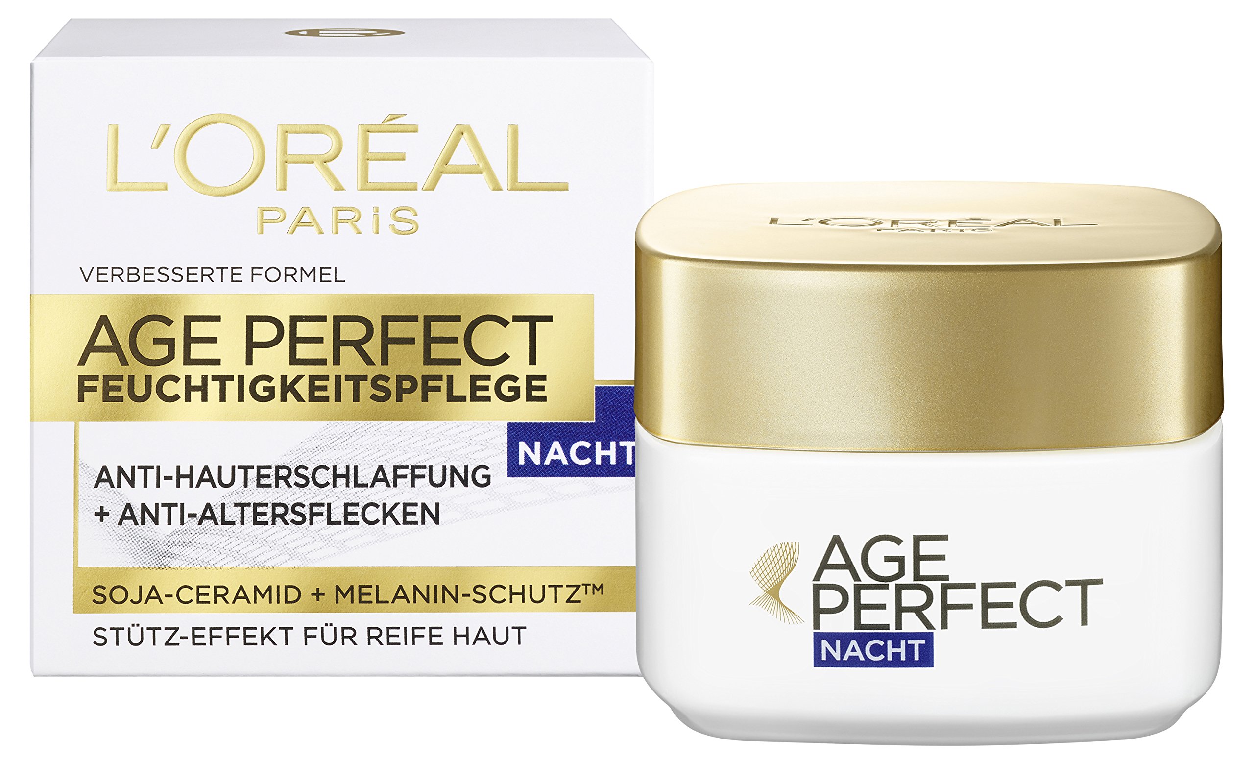 L'Or al Paris Age Perfect Night Care Anti-Aging Moisturizer Supportive and Anti-Aging Effect for Mature Skin with Soy Ceramic and Melanin Protection 50 ml