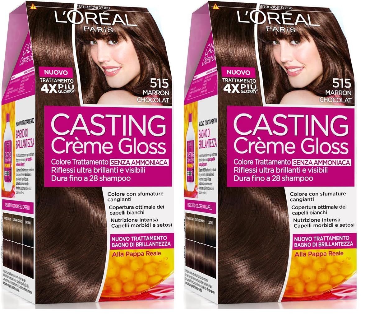 L'Oréal Paris Casting Creme Gloss, tratamiento colorante para el cabello, sin amoniaco para una fragancia agradable. Marron Chocolat 515 (Lot de 2) Brun 1 unité (Lot de 2)