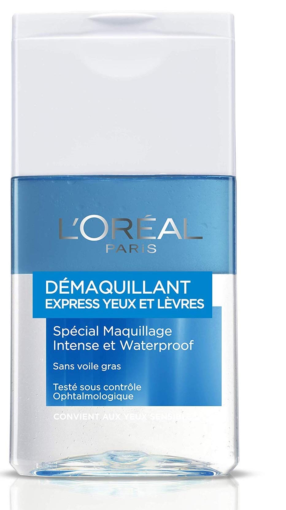 L'Oréal Paris Express Eye and Lip Makeup Remover, specially formulated for heavy and waterproof makeup, combines effective cleansing with gentle, non-greasy results. The darker phase, rich in gentle oils, effectively removes makeup, while the lighter phase is a very soft lotion that provides a pleasant feeling of freshness. The result: quick and easy makeup removal that leaves no residue on the eyes.Suitable for sensitive eyes and contact lens wearers. Shake well before use until the color is uniform. The dark phase, rich in gentle oil, effectively removes long-lasting makeup, while the light phase is a very gentle lotion that leaves a feeling of freshness. Gentle makeup remover for eyes and waterproof lips, L'Oréal Paris.Le démaquillant express yeux et lèvres de L'Oréal Paris, spécial maquillage intense et waterproof allie efficacité démquillante et douceur sans effet gras. La phase foncée, riche en huiles douces, démaquille efficacement le maquillage alors que la phase claire est une lotion très douce qui procure une agréable sensation de fraîcheur. Résultat: un démaquillage rapide et facile qui ne laisse aucun voile sur les yeux.Convient aux yeux sensibles et aux porteurs de lentilles. Agiter avant emploi jusqu'à obtention d'une couleur homogène. La phase foncée, riche en huile douce démaquille efficacement le maquillage longue durée, la phase claire est une lotion très douce qui apporte une sensation de fraicheur. Démaquillant doux pour les yeux et lèvres waterproof L'Oréal Paris.L'Oréal Paris Démaquillant Doux Yeux Lèvres Waterproof, 125 ml Démaquillant Waterproof 125 ml (Lot de 1)