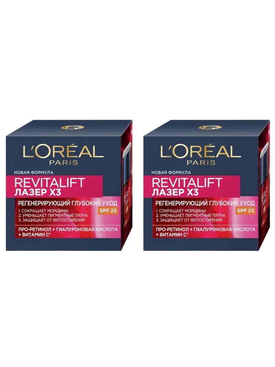 | Полное наименование товара | Крем для лица L'Oreal Paris Revitalift Лазер х3, дневной, SPF-25, 50мл |
