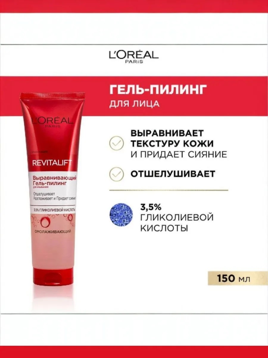 | Полное наименование товара | Выравнивающий гель-пилинг для умывания Revitalift, 150 мл |