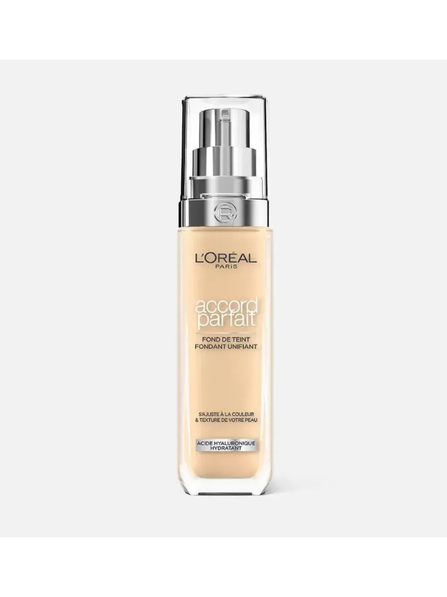 L’Oreal Paris Accord Parfait Foundation No. 2 D/W, 30 ml. This liquid foundation visually evens out skin tone and conceals redness. Ultra-fine pigments adapt to your skin tone. Hyaluronic acid moisturizes and softens.