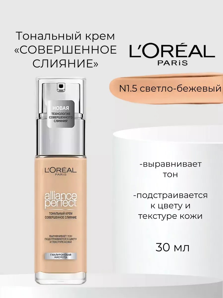 Жидкий тональный крем альянс перфект от L'Oreal Paris выравнивает тон, подстраивается к цвету и текстуре кожи. Заметно преображает кожу за 2 недели применения: кожа более гладкая и сияющая.