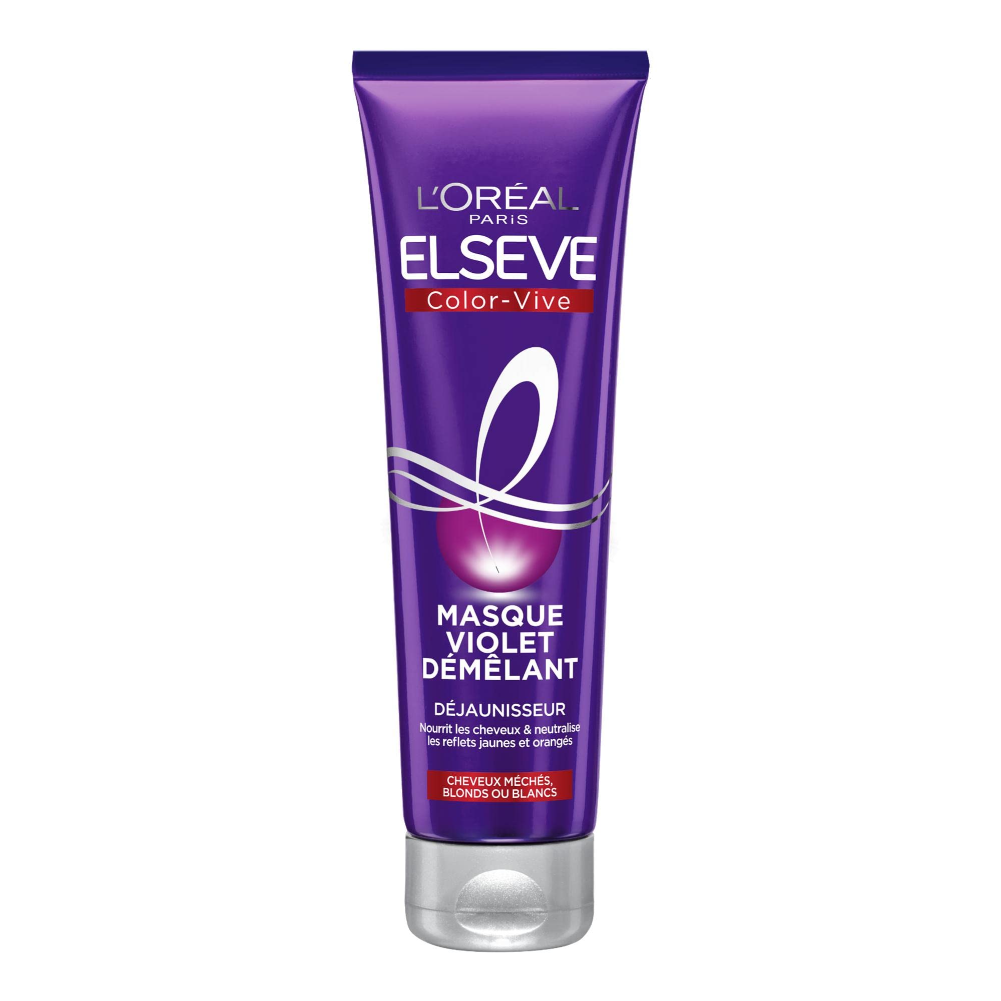 Discover the Elseve Color-Vive Yellow Detangling Purple Mask. Why a purple formula? Is your hair highlighted, blonde or white? Unwanted yellow or orange reflections may appear. As purple is the opposite color to yellow and orange, our formula enriched with purple pigments instantly neutralizes unwanted yellow and orange highlights, detangles and nourishes your hair. Effective from the first application: the proof on lorealparis.fr. Recommended application time: Once a week, after your Color-Vive Violet De-Yellowing Shampoo, apply to damp hair and leave for the recommended time depending on your hair color, then rinse thoroughly. Our expert advice: - On gray or white hair: leave on for 1 minute. - On blonde hair: leave on for 5 minutes. - For brunettes with highlighted hair, leave on for up to 10 minutes for optimal results. INGREDIENTS 1217039 A - INGREDIENTS: AQUA WATER • CETEARYL ALCOHOL • BEHENTRIMONIUM CHLORIDE • CETYL ESTERS • CI 60730 ACID VIOLET 43 • CI 45100 ACID RED 52 • SODIUM HYDROXIDE • PHENOXYETHANOL • TRIDECETH-6 • CHLORHEXIDINE DIGLUCONATE • LIMONENE • LINALOOL • BENZYL SALICYLATE • BENZYL ALCOHOL • BENZOPHENONE-4 • AMODIMETHICONE • ISOPROPYL ALCOHOL • ALPHA-ISOMETHYL IONONE • CITRIC ACID • CITRONELLOL • CETRIMONIUM CHLORIDE • COUMARIN • AMYL CINNAMAL • PARFUM FRAGRANCE (F.I.L. C228727 1). The lists of ingredients used in the composition of our brand's products are regularly updated. Before using a product from our brand, you are invited to read the list of ingredients on its packaging to ensure that the ingredients are suitable for your personal use. DIRECTIONS FOR USE To be used once a week after Color-Vive Violet De-Yellowing Shampoo, apply to damp hair and leave for the recommended time depending on your hair color, then rinse thoroughly. Contents: 1x L'Oréal Paris Elseve Color-Vive Detangling Purple Mask, 150 ml. Formula enriched with violet pigments for instant neutralization of unwanted tones. Application: Use once a week after the Color-Vive Detangling Purple Shampoo. Apply to damp hair and leave on for the recommended time according to your hair color, then rinse thoroughly. Results: Detangled and nourished hair. Pure blonde or white without yellow or orange tones. Effective from the first application. Detangling purple mask for highlighted, blonde or white hair. Ideal as a complement to your usual hair care routine with application every 3 shampoos. Découvrez le Masque Violet Démêlant Déjaunisseur Elseve Color-Vive. Pourquoi une formule violette? Vos cheveux sont méchés, blonds ou blancs? Des reflets jaunes ou orangés indésirables peuvent apparaître. Comme le violet est la couleur opposée au jaune et à l'orange, notre formule enrichie en pigments violets neutralise instantanément les reflets jaunes et orangés indésirables, démêle et nourrit vos cheveux. Efficace dès la première application : la preuve sur lorealparis.fr. Temps de pose conseillé: Une fois par semaine, après votre Shampooing Violet Déjaunisseur Color-Vive, appliquez sur cheveux humides et laissez poser le temps recommandé selon votre couleur de cheveux, puis rincez abondamment. Notre conseil d'expert : - Sur cheveux gris ou blancs : laissez poser 1 minute. - Sur cheveux blonds : laissez poser 5 minutes. - Pour les brunettes aux cheveux méchés, laissez poser jusqu'à 10 minutes pour un résultat optimal. INGRÉDIENTS 1217039 A - INGREDIENTS: AQUA WATER • CETEARYL ALCOHOL • BEHENTRIMONIUM CHLORIDE • CETYL ESTERS • CI 60730 ACID VIOLET 43 • CI 45100 ACID RED 52 • SODIUM HYDROXIDE • PHENOXYETHANOL • TRIDECETH-6 • CHLORHEXIDINE DIGLUCONATE • LIMONENE • LINALOOL • BENZYL SALICYLATE • BENZYL ALCOHOL • BENZOPHENONE-4 • AMODIMETHICONE • ISOPROPYL ALCOHOL • ALPHA-ISOMETHYL IONONE • CITRIC ACID • CITRONELLOL • CETRIMONIUM CHLORIDE • COUMARIN • AMYL CINNAMAL • PARFUM FRAGRANCE (F.I.L. C228727 1). Les listes d'ingrédients entrant dans la composition des produits de notre marque sont régulièrement mises à jour. Avant d'utiliser un produit de notre marque, vous êtes invités à lire la liste d'ingrédients figurant sur son emballage afin de vous assurer que les ingrédients sont adaptés à votre utilisation personnelle MODE D'EMPLOI À utiliser une fois par semaine après le Shampooing Violet Déjaunisseur Color-Vive, Appliquer sur cheveux humides et laisser poser le temps recommandé selon votre couleur de cheveux, puis rincer abondamment. Contenu : 1x Masque Violet Démêlant Déjaunisseur Elseve Color-Vive de L'Oréal Paris, 150 ml. Formule enrichie en pigments violets pour une neutralisation instantanée des reflets indésirables. Application : À utiliser une fois par semaine après le Shampooing Violet Déjaunisseur Color-Vive, Appliquer sur cheveux humides et laisser poser le temps recommandé selon votre couleur de cheveux, puis rincer abondamment. Résultats : Des cheveux démêlés et nourris, Un blond ou blanc pur sans reflets jaunes ni orangés, Efficace dès la première application. Masque violet démêlant déjaunisseur pour les cheveux méchés, blonds ou blancs, Idéal en complément de votre routine de soin capillaire habituelle avec application tous les 3 shampooings.
