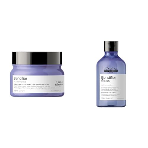 L'Oréal Professionnel, Shampoing Illuminateur Masque Nutritif pour Cheveux Blonds et Méchés, Blondifier Gloss, SERIE EXPERT, 300 ml 250 ml