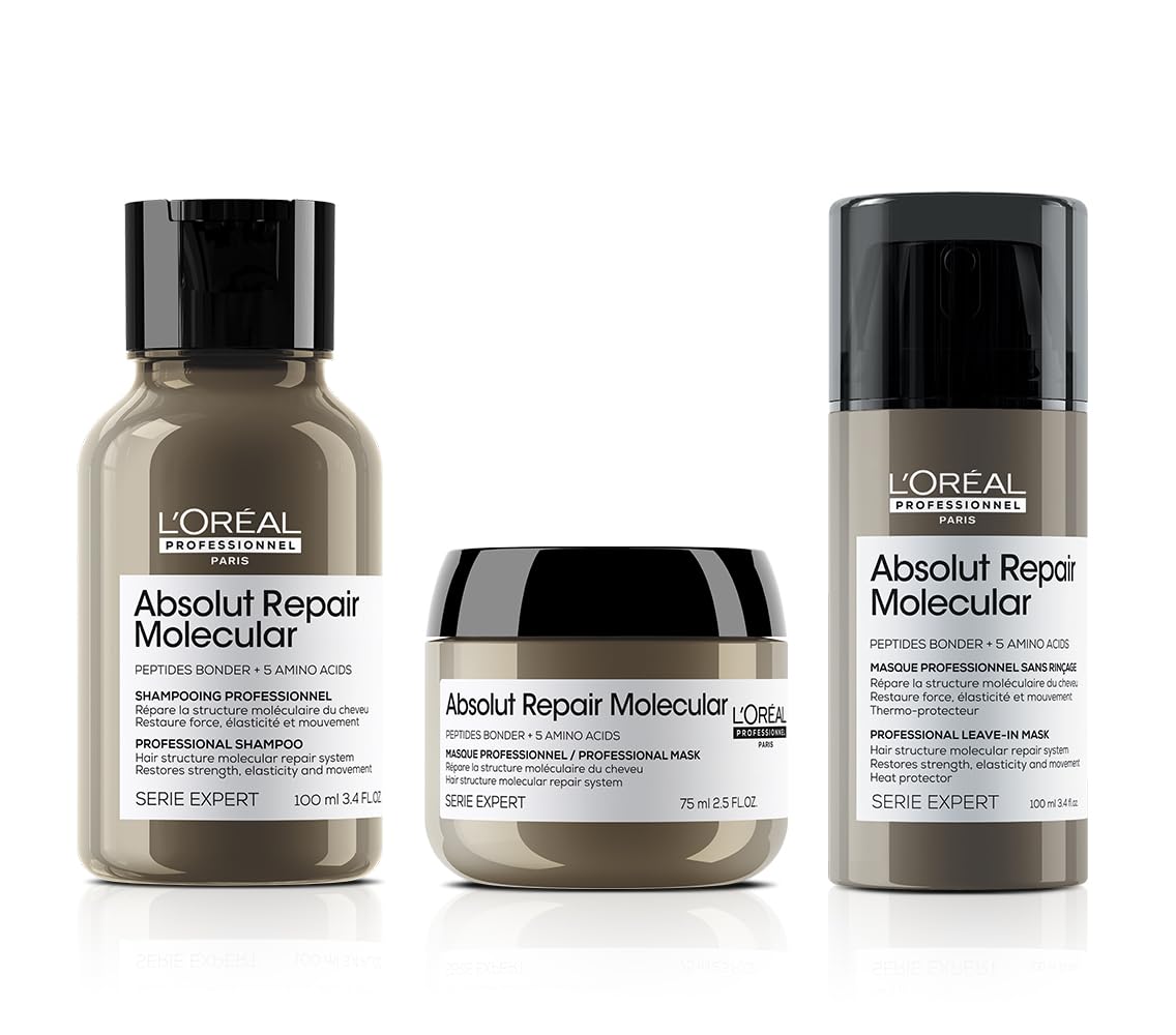 L'Or al Professionnel Paris L Or al Professionnel Absolut Repair Molecular Discovery Kit All Types of Damaged Hair Trio Shampoo (100ml) + Concentrated Mask (75ml) + Leave-In Mask (100ml) Patented Formula