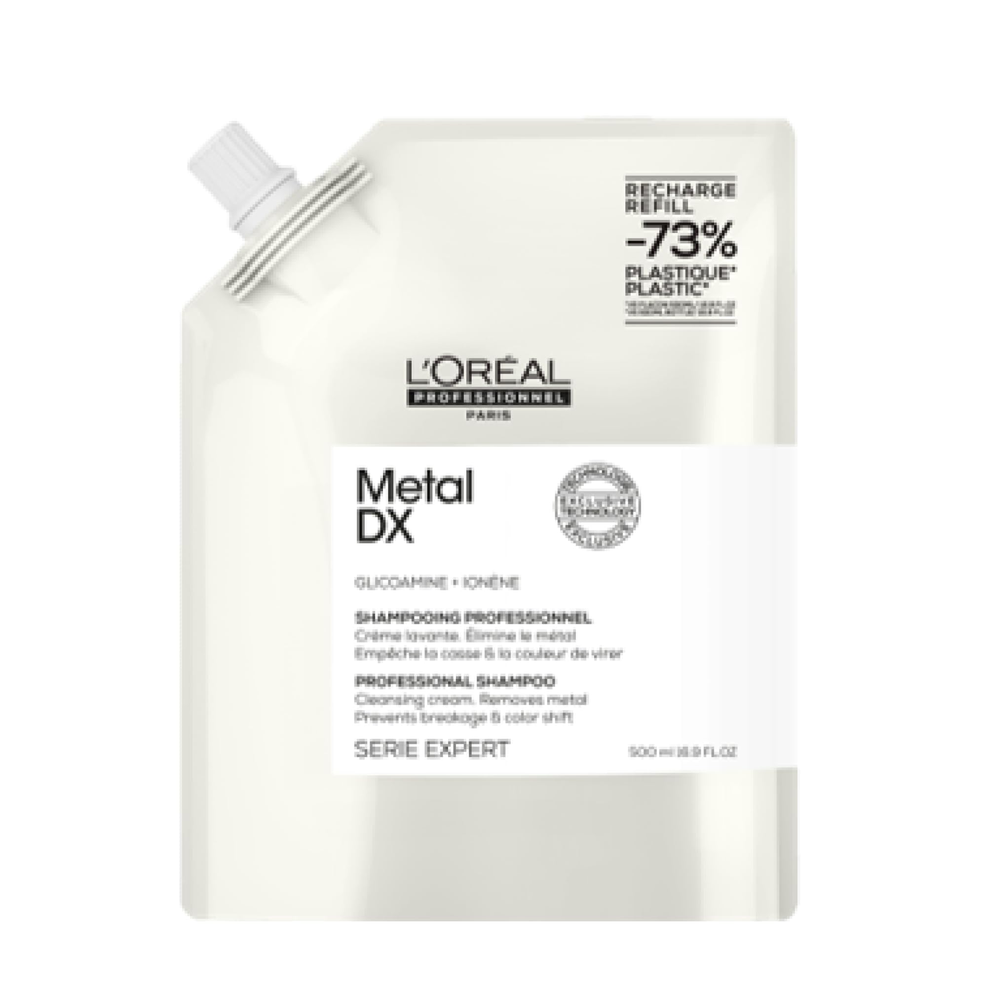 This shampoo delivers more intense color and shine. Its creamy texture leaves hair softer and more manageable. 97 less breakage, twice the shine, and more vibrant color—that's Metal DX for stronger hair. Metal DX is specially formulated to remove metallic deposits from all hair types. These deposits are often the cause of breakage and color fading. Refill with 73 less plastic than the 500ml bottle.