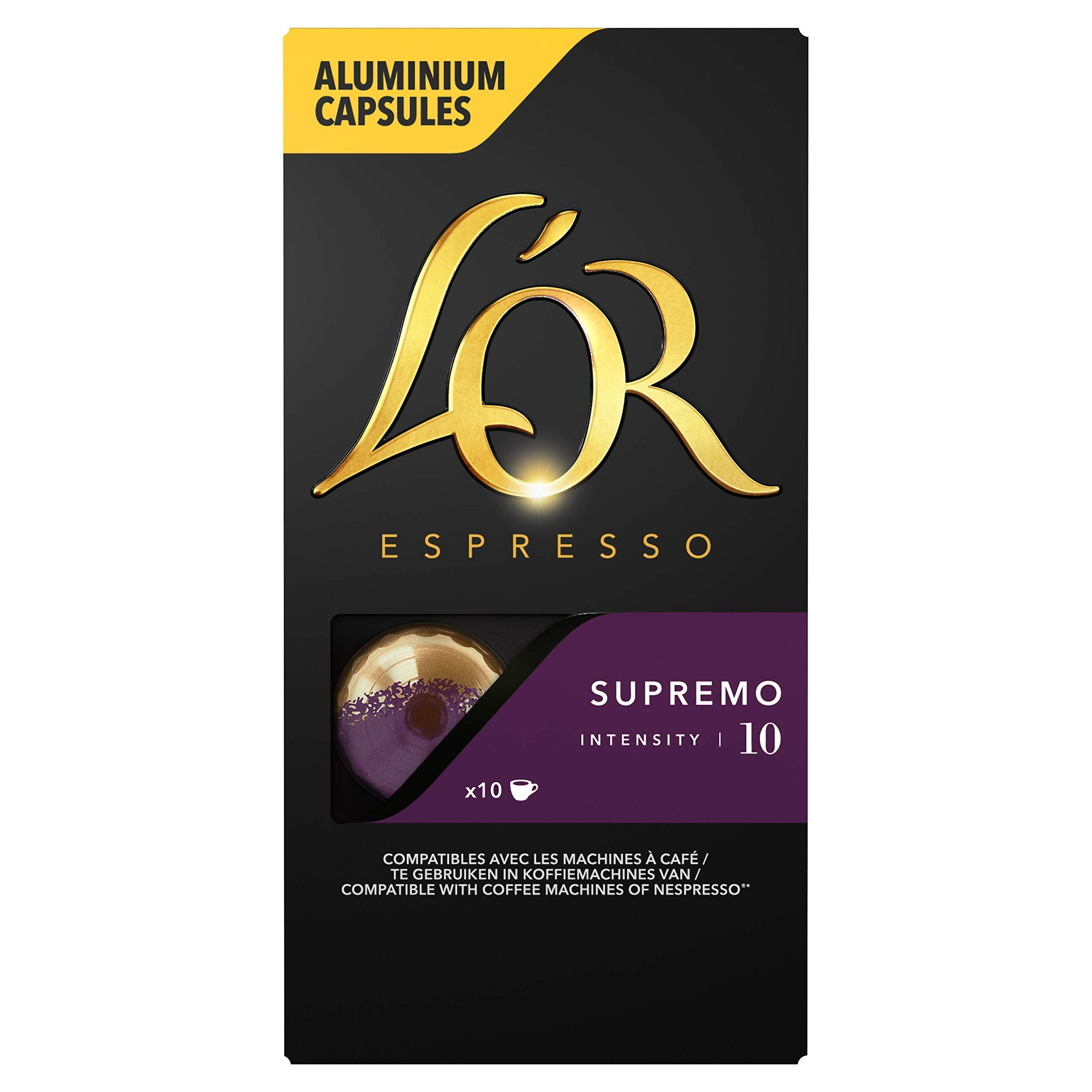 L'Or Espresso Caf Supremo - Intensity 10 - 50 Aluminum Capsules Compatible with Nespresso * Machines (Pack of 5X10 capsules)
