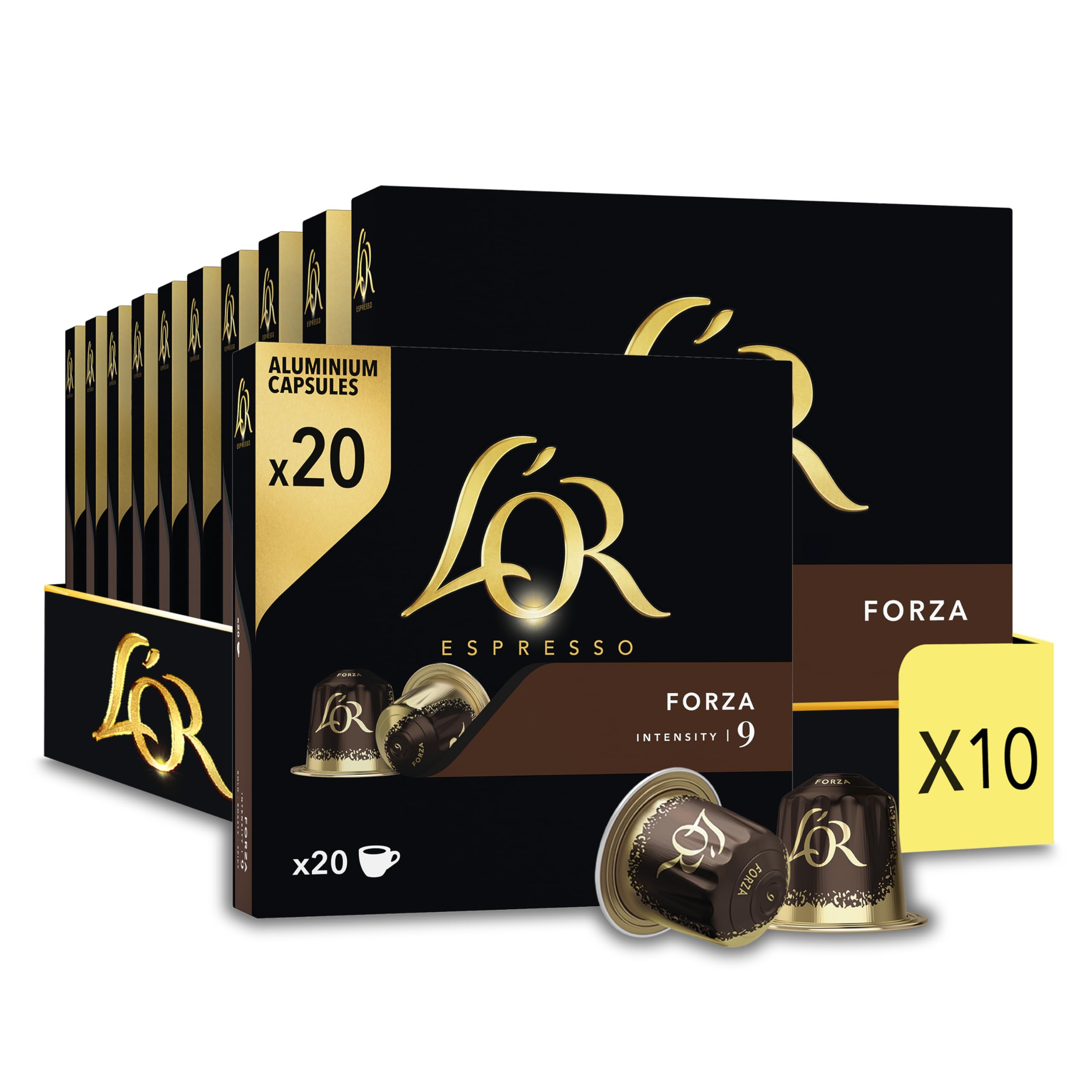 L'Or Espresso Café - 200 Capsules Forza Intensité 9 - compatibles Nespresso (lot de 10 x 20)