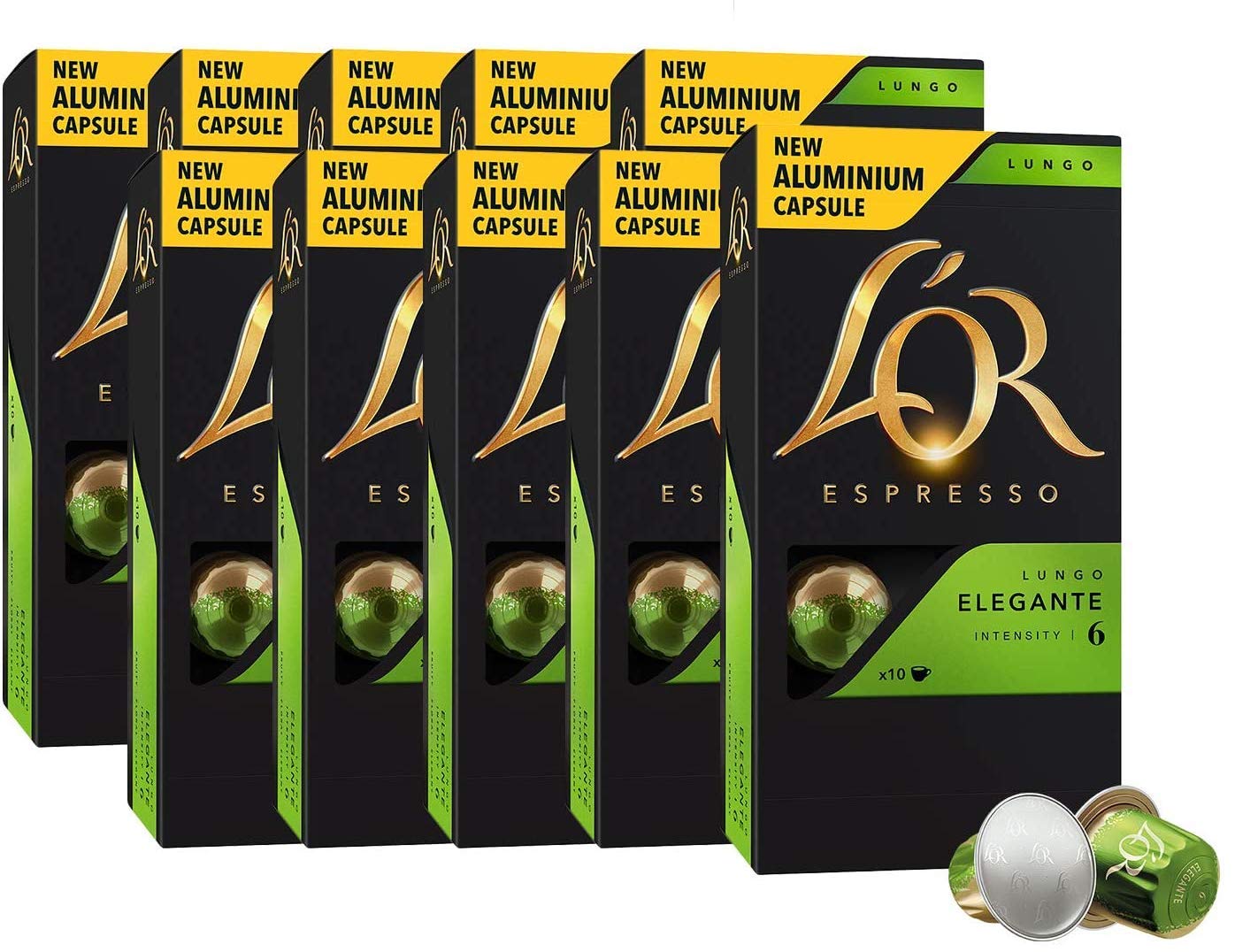 L'OR L'OR Espresso Coffee Lungo Eleganta Intensity 6 Aluminium Coffee Capsules Compatible Nespresso 10 Packs of 10 Capsules (100 Drinks)