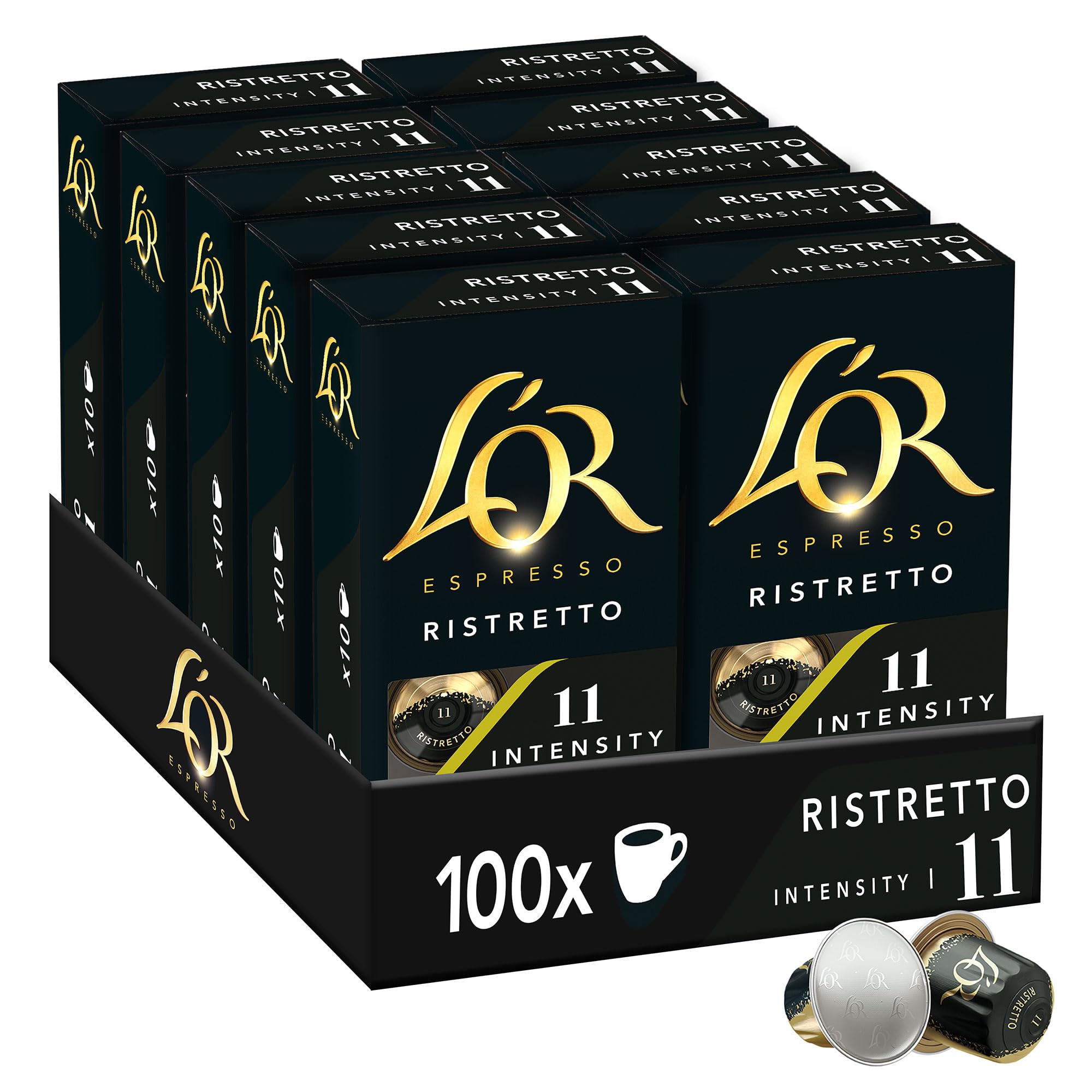L'OR Ristretto 100 Coffee Capsules Intensity 10 Nespresso Compatible (Pack of 10 x 10)