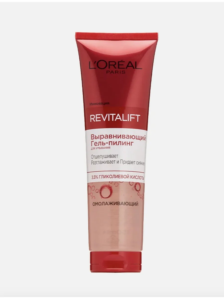 Новый Выравнивающий Гель-пилинг для умывания Revitalift от L'Oreal Paris. В составе Гликолевая кислота - мощный активный дерматологический компонент, известный эффективным отшелушивающим действием без абразивных частиц для удаления омертвевших клеток. Мгновенно - загрязнения и омертвевшие клетки заметно удалены. Кожа более гладкая и сияющая. День за днем кожа более обновленная, разглаженная и поры менее заметны.